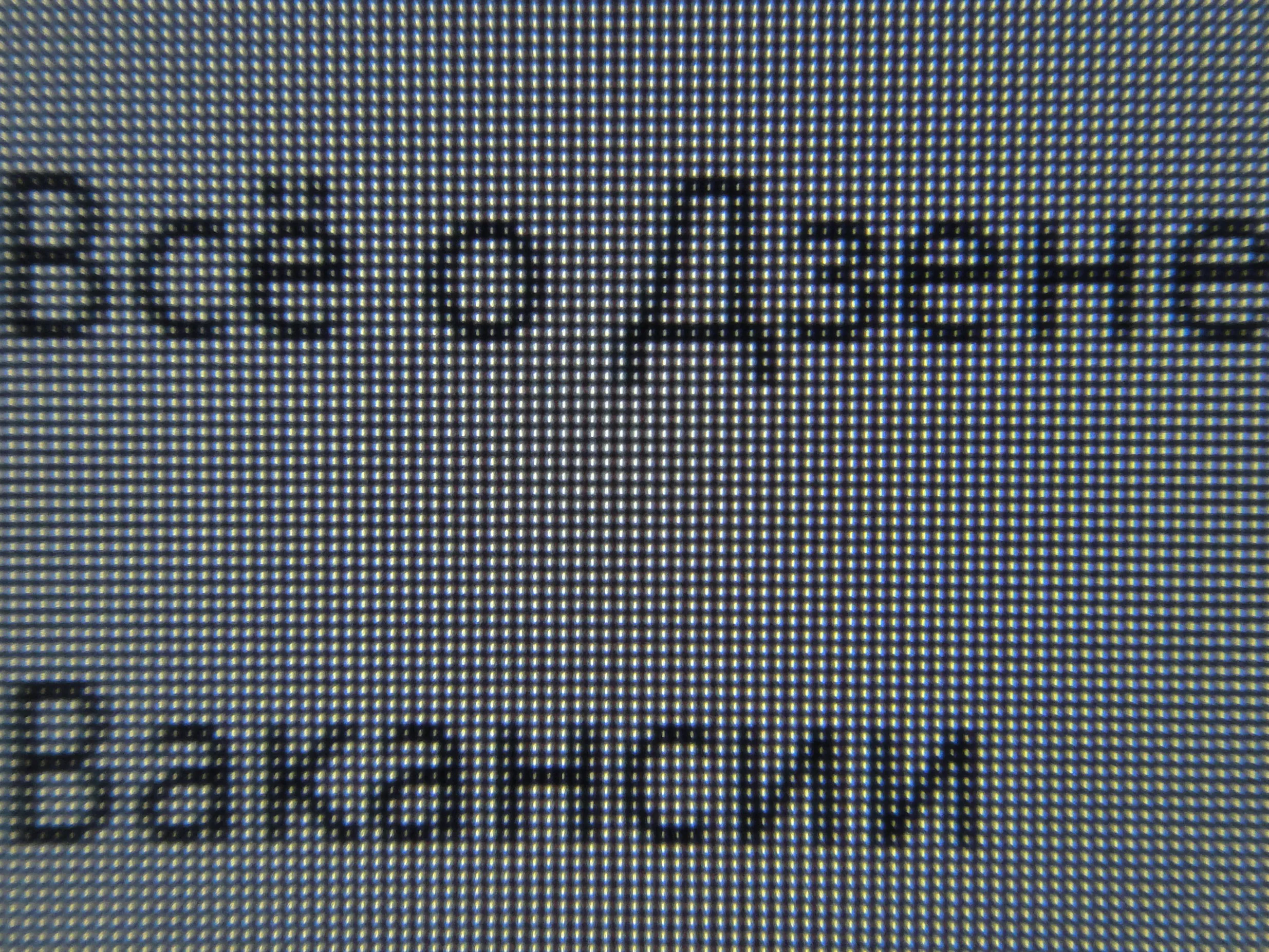 В качестве демонстрации использования полуматовой (матовой в понятии производителя) защитной поверхности матрицы — фотография выше. Благодаря ей видимость кристаллического эффекта (КЭ) должна быть сильно снижена, а антибликовые свойства сохранены на высоком уровне.