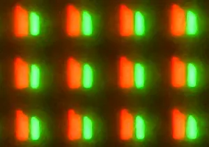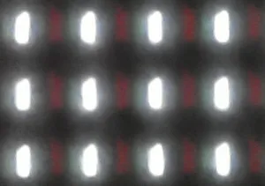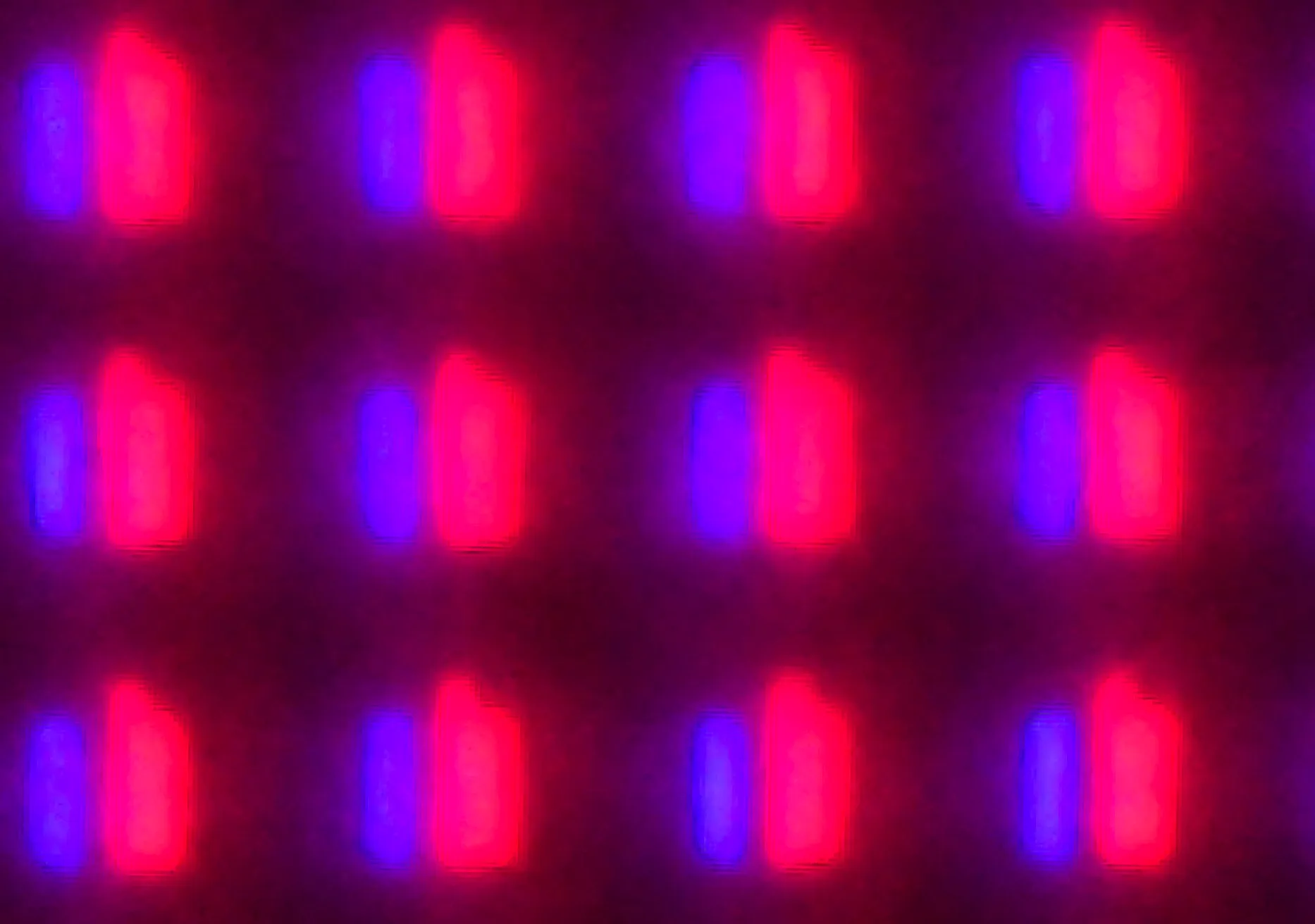 Самой W-OLED матрице свойственна особая пиксельная структура формата WBGR, в которой вместо классических трёх RGB субпикселей добавлен дополнительный «белый», а три оставшихся поставлены в обратном порядке. При близком рассмотрении это может быть заметно, но при отдалении на расстояние свыше 1 метра данная особенность становится практически неразличимой.