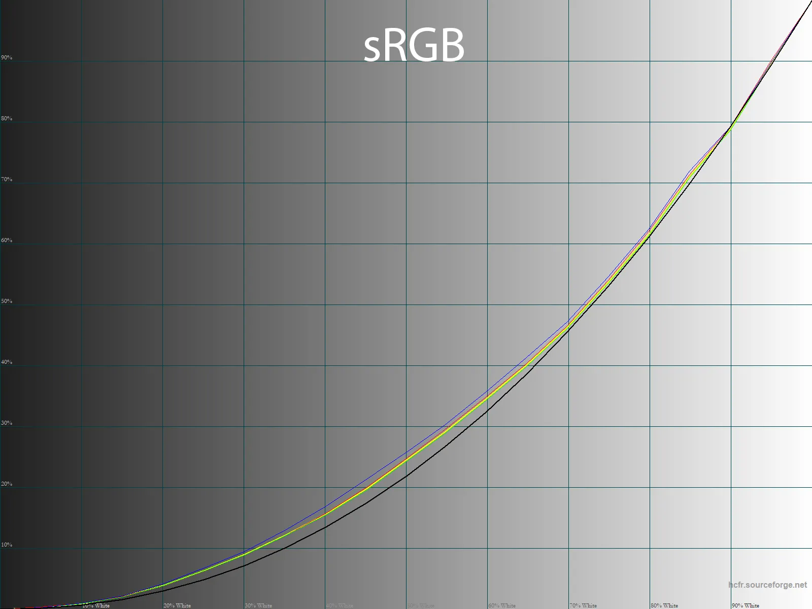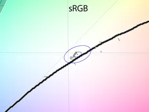 При желании быстро снизить цветовую насыщенность можно воспользоваться встроенным режимом эмуляции sRGB. Качество его настройки — среднее — цветовой охват урезается до 88,5% sRGB — «зарезали» больше, чем надо.