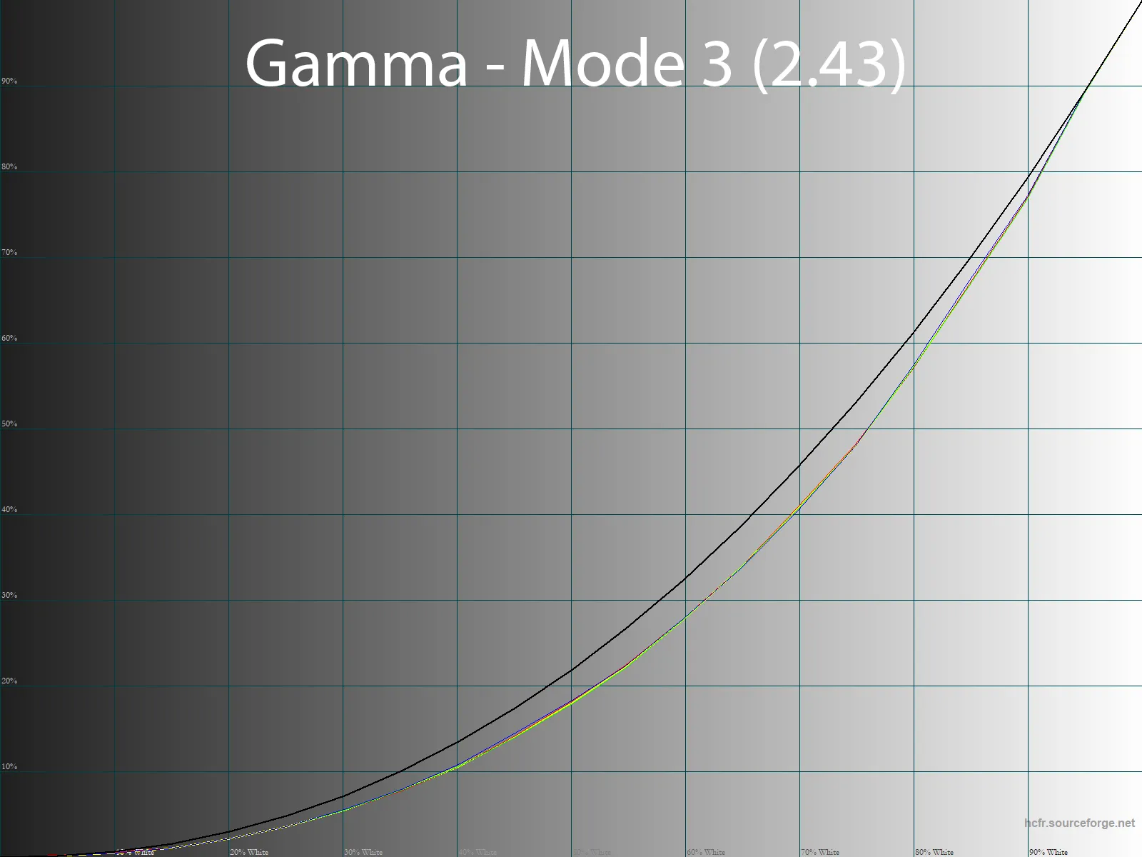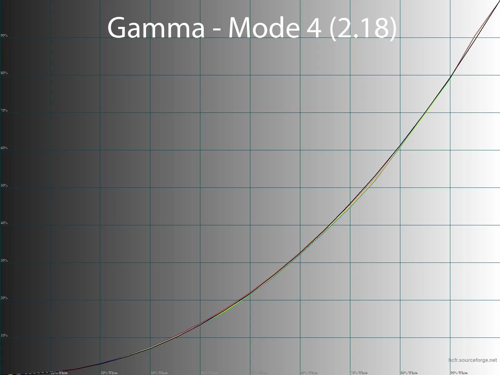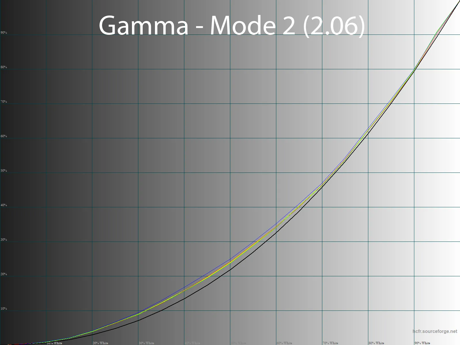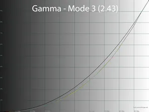 По среднему значению гаммы в изученных режимах можно говорить о том, что в LG не концентрировались на максимальной контрастности, за исключением режима DCI-P3, для которого была использована кривая с показателем близким к базовым 2.6 для данного стандарта. Остальные режимы отличаются средней гаммой от 1.82 до 2.08.
