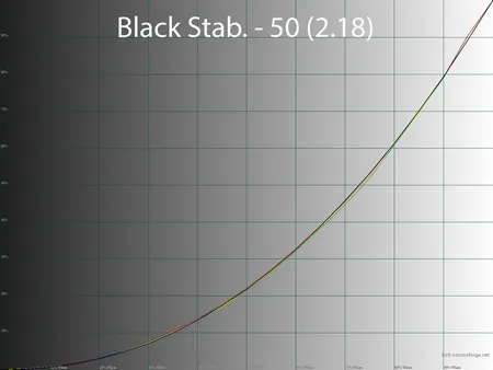 Данную особенность, проявляющуюся даже при заводских установках с высоким значением яркости, можно слегка поправить с помощью регулировки параметра Black Stabilizer в меню модели, но при определённых значениях параметра вы окажетесь в ситуации, когда способность монитора к воспроизведению глубоких теней попросту исчезнет. Как лучше — решать только вам. Идеального варианта здесь нет.