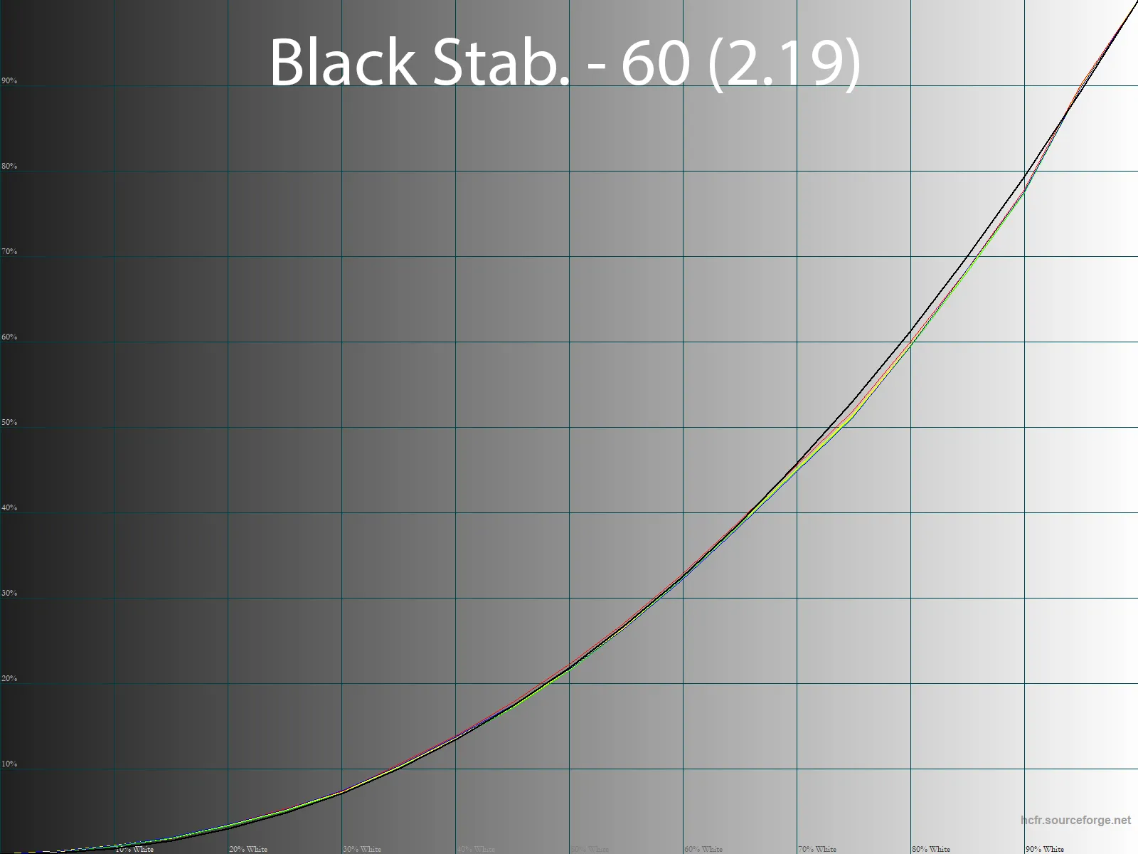 Основные изменения произошли за счёт снижения яркости, правок значений RGB Gain и изменений режима гаммы. Регулировка уровней контрастности и стабилизатора чёрного монитору не требуются — сделаете только хуже.