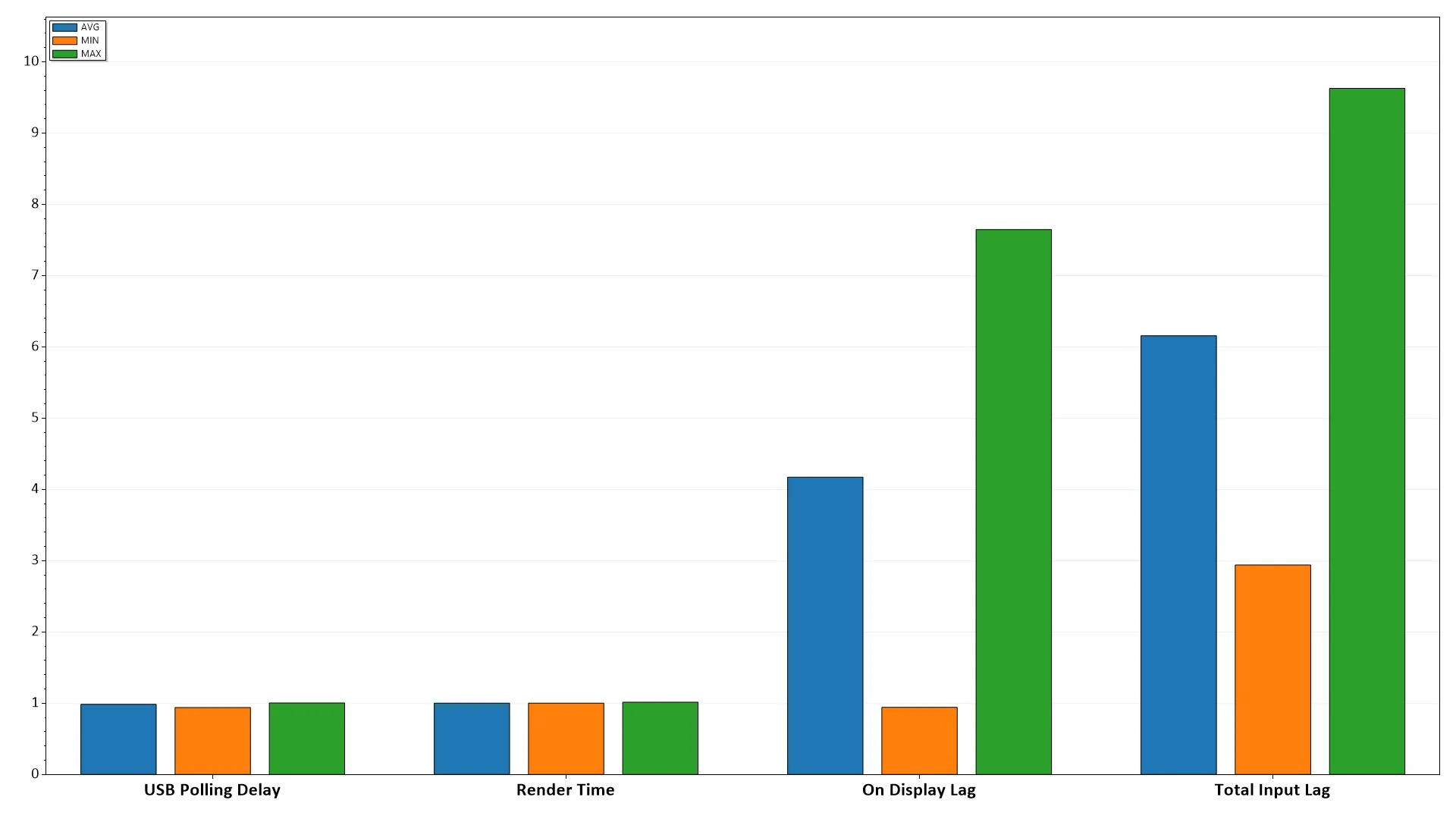 Провели мы проверку и время задержки вывода монитора — input-lag. В случае с героем обзора, при подключении по DisplayPort 1.4 с DSC и установленной частотой 165 Гц, в среднем оно не превысило 4,2 мс при активированном G-Sync Compatible.
