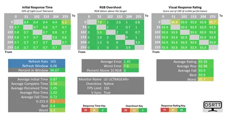 Для анализа времени отклика в случае с W-OLED-новинкой, учитывая особенности её работы, был выбран стандарт измерений VESA с оценкой фактического времени отклика (Initial Response Time) и фиксацией результатов на 10-90% яркости любого цветового перехода.