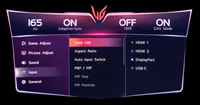 Под выбор источника сигнала и соотношение сторон выделен раздел Input. Автоматический выбор источника сигнала в мониторе активирован по умолчанию, есть выбор режимов работы функций PiP/PbP и их более точная настройка, представлена пара дополнительных режимов работы встроенного скалера (без последующего увеличения рабочей частоты).