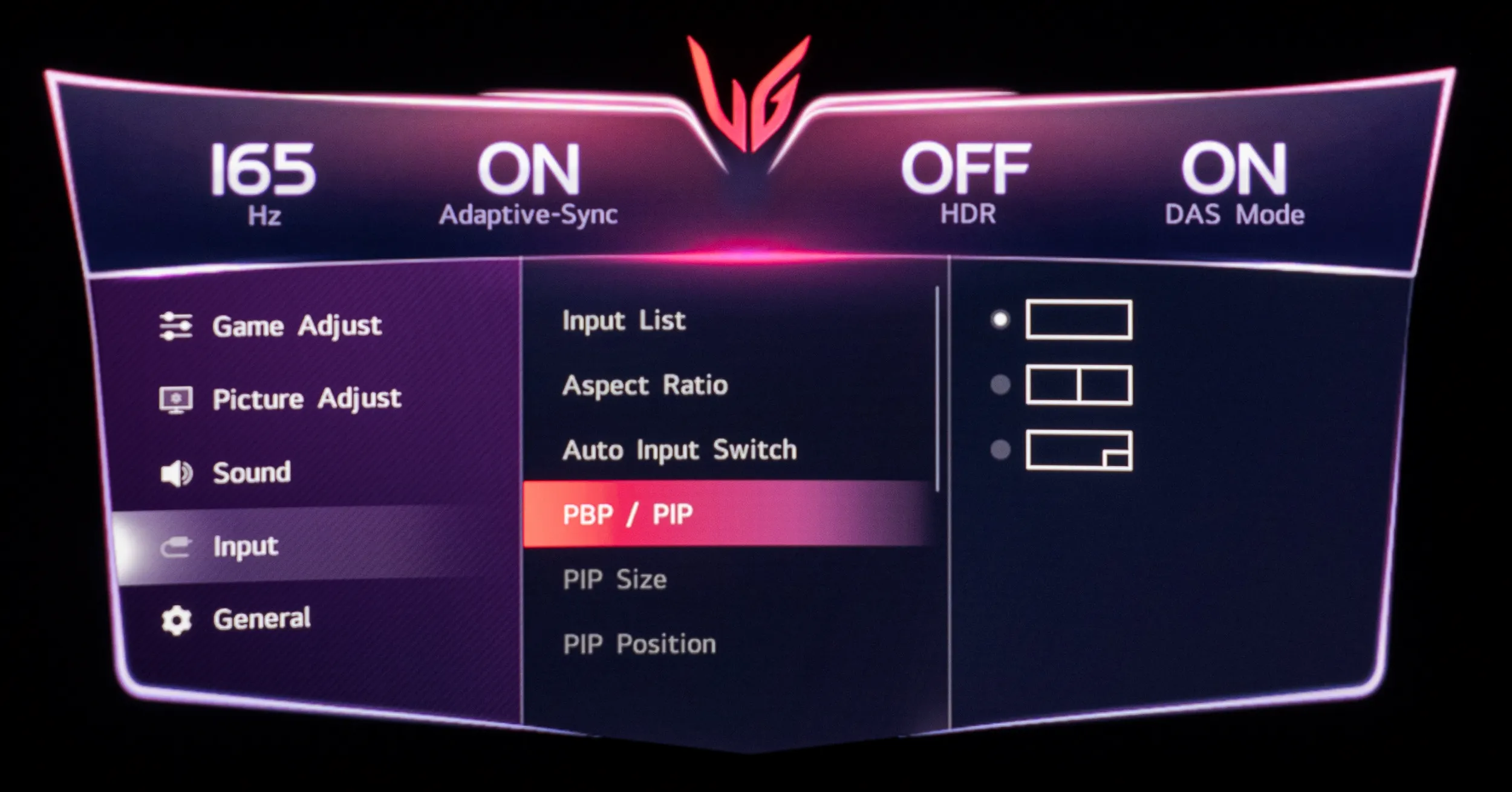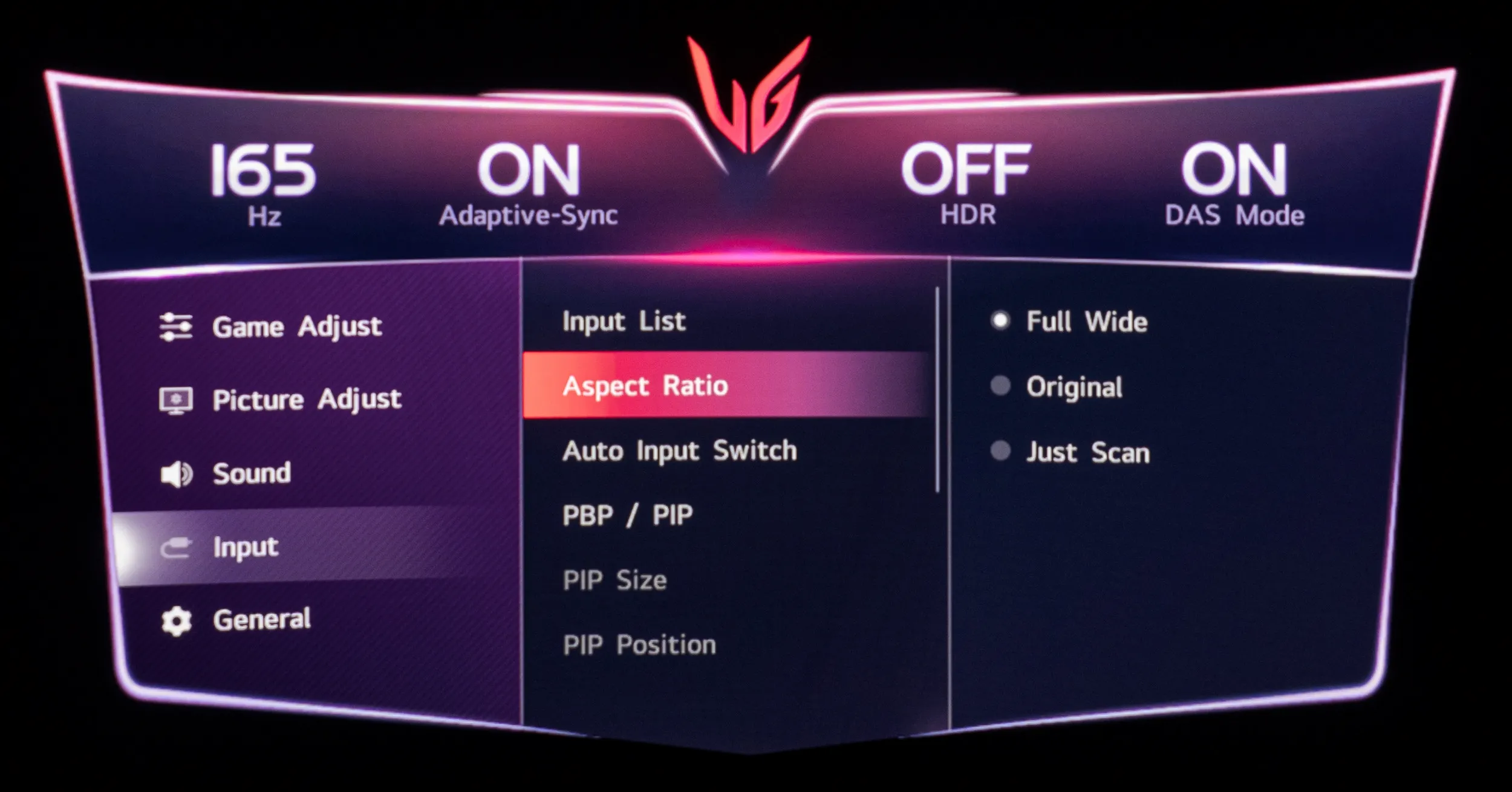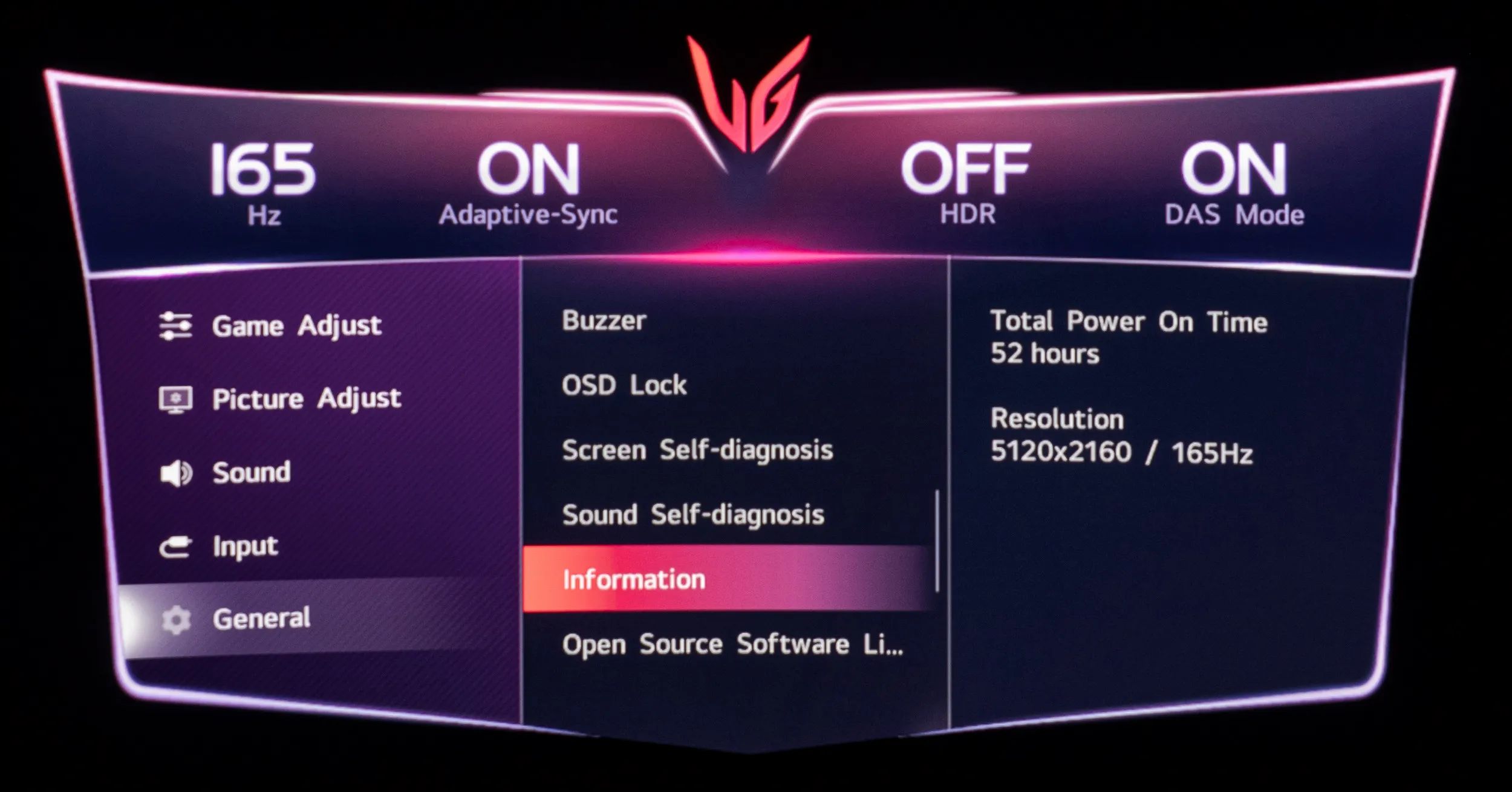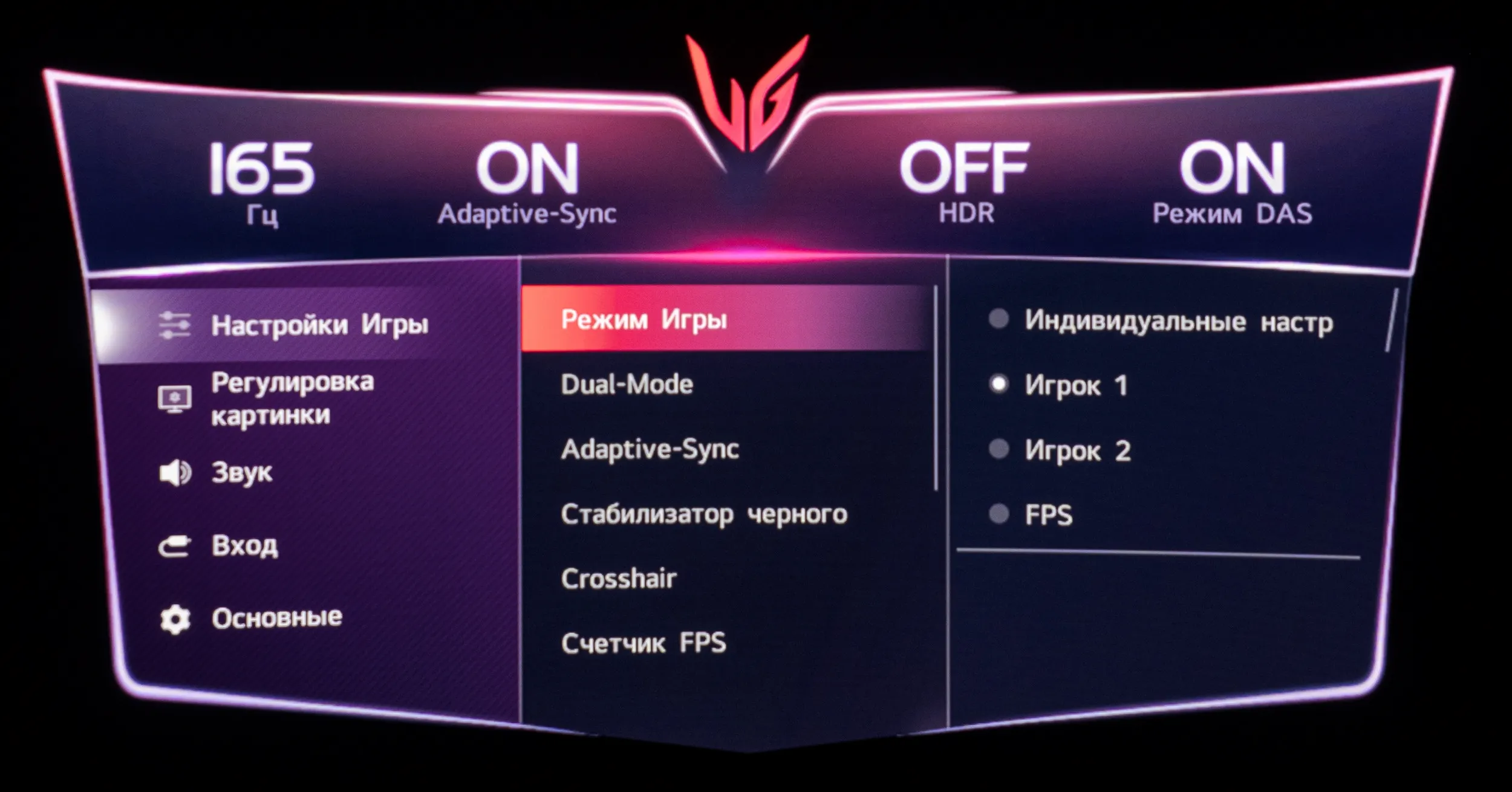 Для LG 45GX950A-B производитель заявил стандартные 0,03 мс GtG, а также максимальную частоту вертикальной развёртки в 165 Гц без необходимости активации дополнительного разгона, для нативного разрешения панели. При переходе к WFHD и FHD можно выставить 330 Гц, но качество картинки от этого визуально страдает, а поэтому возникает логичный вопрос — кто захочет видеть перед собой плохое качество картинки на мониторе за ~300000 рублей?