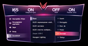 Дополнительно отметим, что монитор, как и все OLED, не использует управляемую технологию разгона Overdrive, как и нет никакой системы «вставки чёрного кадра», довольно эффективную в случае с OLED c частотой до 240 Гц. Таким образом, у пользователя нет вариантов регулировки ни времени отклика, ни собственных визуальных ощущений благодаря дополнительным технологиям (MPRT, BFI и т.д).