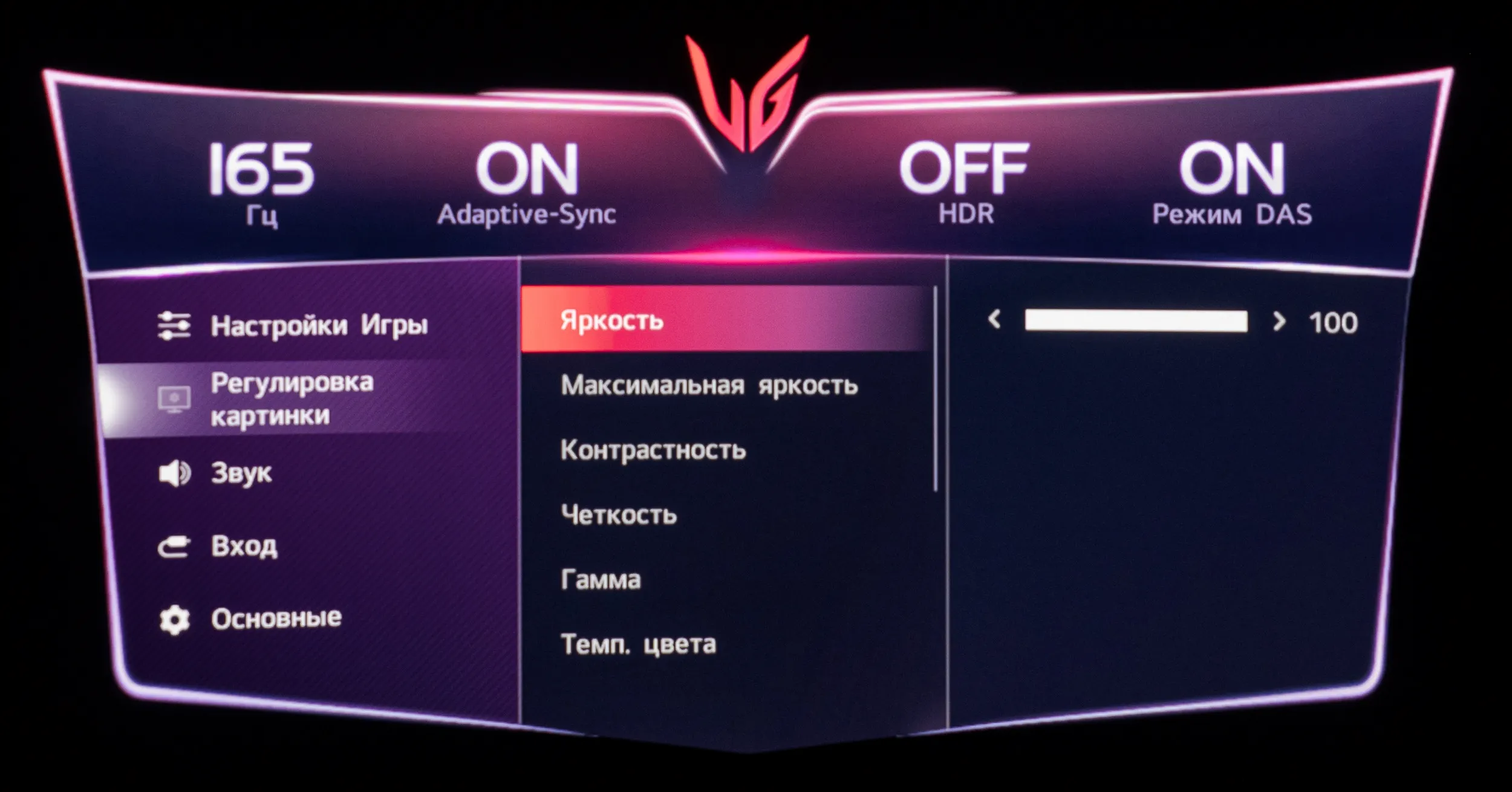 У LG 45GX950A-B отсутствует датчик внешней освещённости для автоматической регулировки яркости, а в меню есть несколько дополнительных параметров, напрямую влияющих на точность цветопередачи и качество картинки в целом. В случае с героем обзора мы решили оценить влияние доступных функций Black Stabilizer и Gamma.