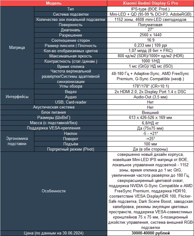 Говоря про конкурентов мы, конечно же, могли назвать с десяток популярных 27-дюймовых игровых WQHD IPS c частотой от 144 до 180 Гц, но в этом нет никакого смысла – вы их хорошо знаете, но реальными конкурентами Xiaomi Redmi Display G Pro они не являются из-за отсутствия той самой продвинутой Mini-LED подсветки. Другими словами – дисплей от Xiaomi играет на совершенно ином уровне (в другой лиге), хотя предлагается за сумму обычного LED монитора. Это нонсенс!