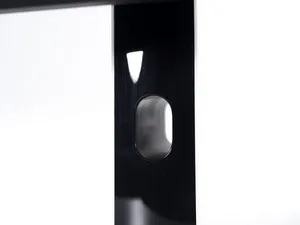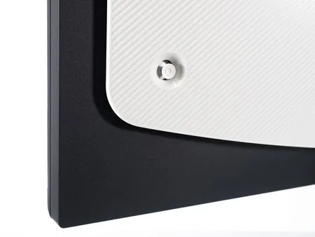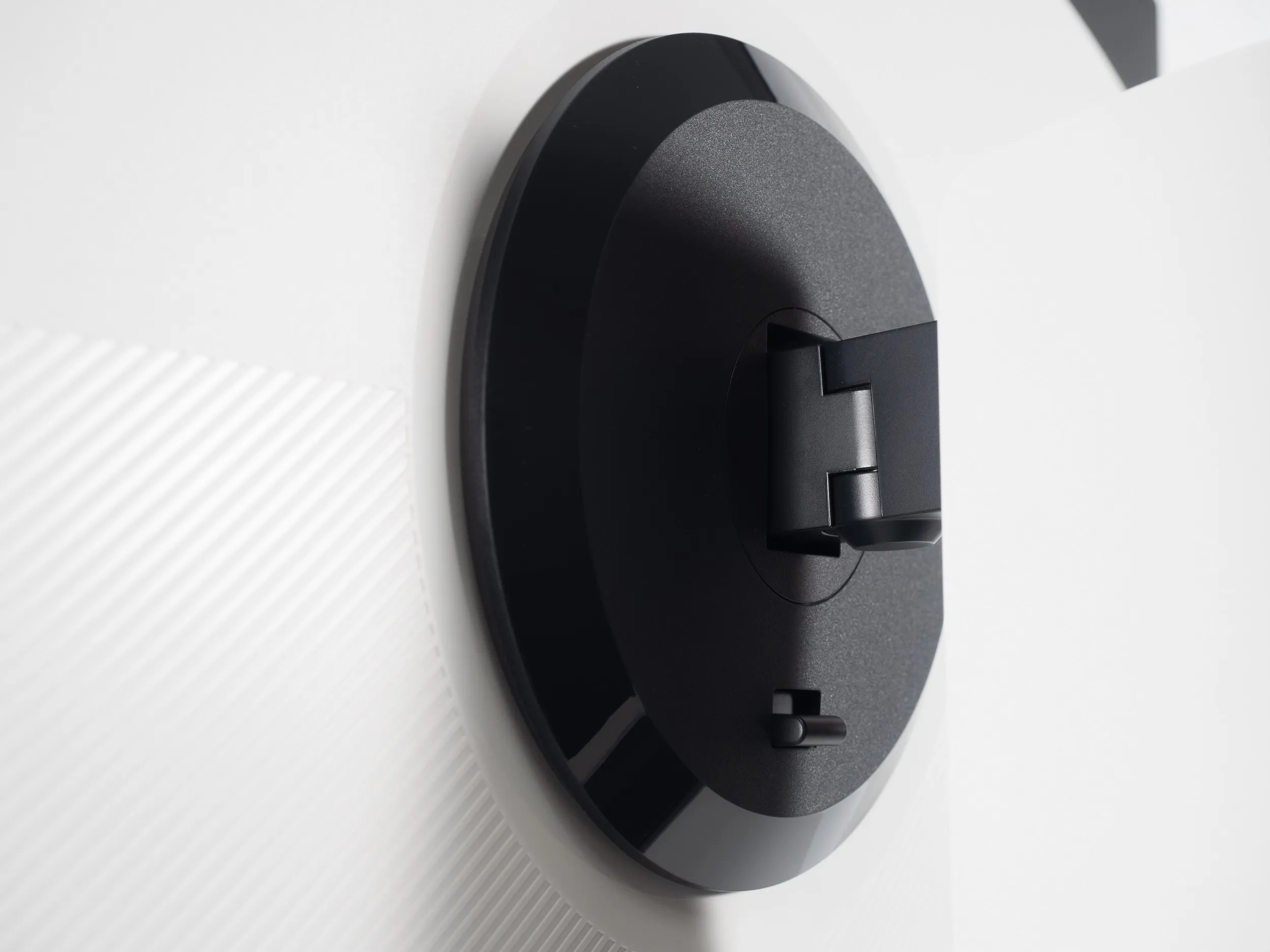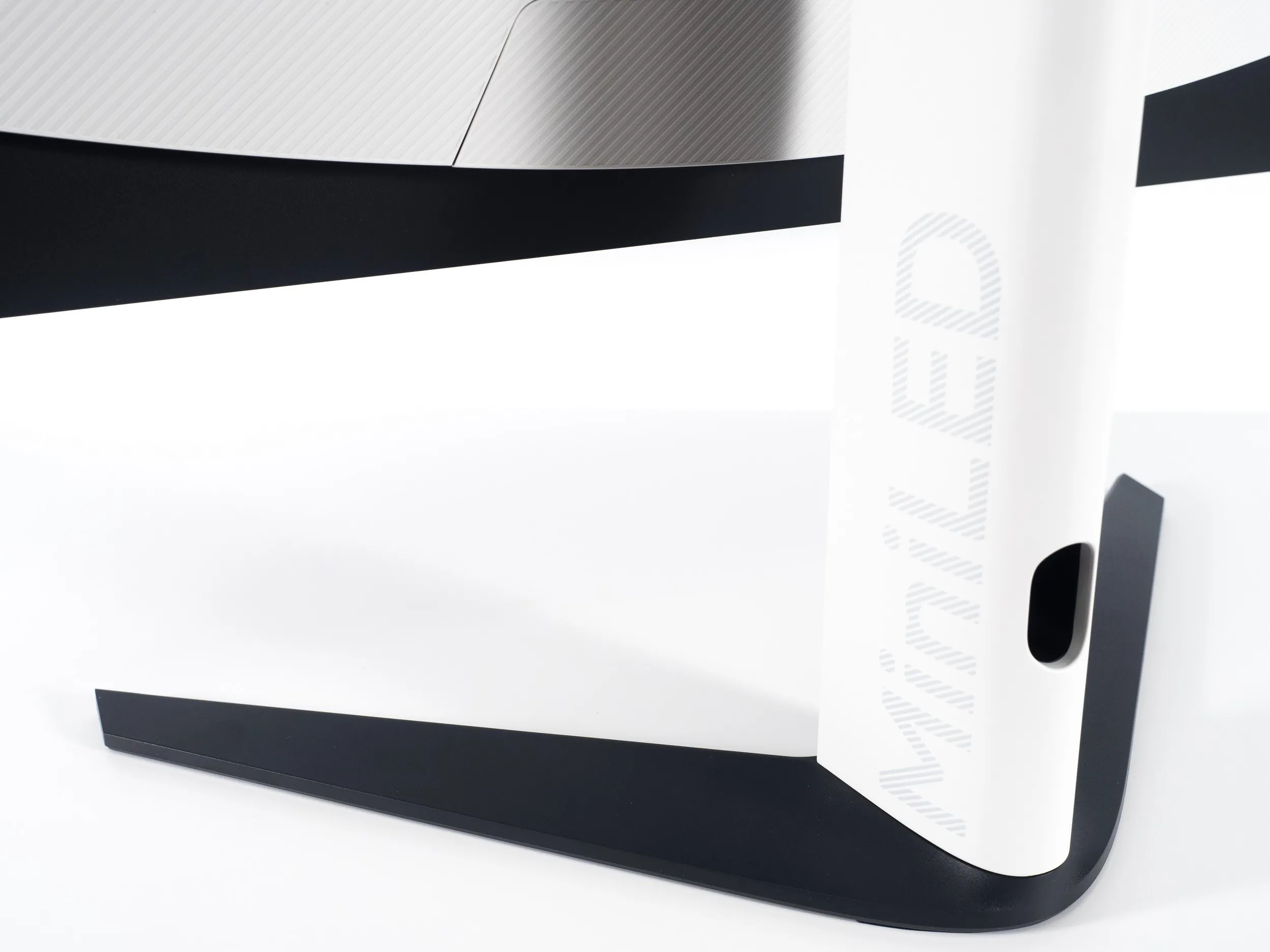 В новинке используется Y-подобная подставка. Центральная колонна стыкуется с корпусом монитора буквально за пару секунд. Внешний шарнир выполнен из крашенного в чёрный матовый цвет металла. VESA-совместимое крепление стандарта 75 х 75 мм возвышается в зоне крепежа, а для разъединения необходимо отвести пластиковый рычажок вниз – всё очень просто и понятно.