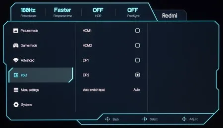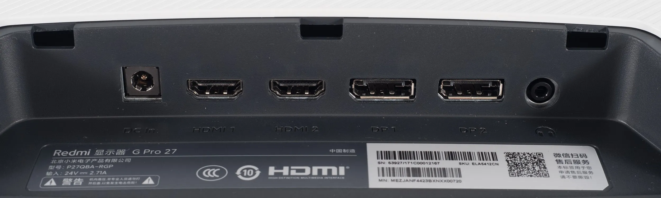 Набор доступных интерфейсов у Xiaomi Redmi Display G Pro не самый типичный: есть сразу два DisplayPort 1.4 c DSC и два HDMI 2.0. В случае с первыми модель может работать на максимальной частоте в 180 Гц в 10-битном режиме (SDR и HDR), а вот HDMI порты могут обеспечить только 144 Гц развёртку – так часто и бывает.