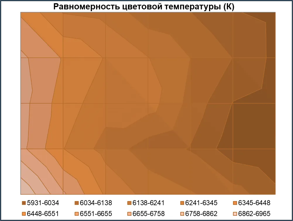 Теперь перейдём к рассмотрению равномерности цветовой температуры по всей площади экрана.
