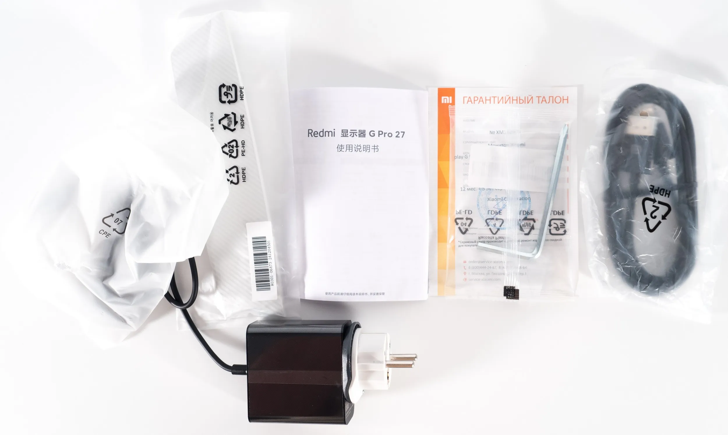 Для класса и стоимости монитора, а также учитывая его технические возможности, комплект поставки можно назвать хорошим. Докупать понадобиться только HDMI кабель в случае необходимости подключения дополнительных устройств (игровой приставки). Получить же максимальную частоту развёртки в 10-битном режиме с HDR возможно только при использовании DP-подключения.