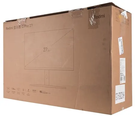 Монитор Xiaomi Redmi поставляется в среднегабаритной картонной коробке без особых визуальных изысков. Для удобства транспортировки есть пластиковая ручка сверху.