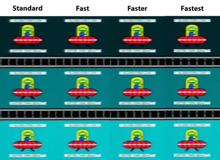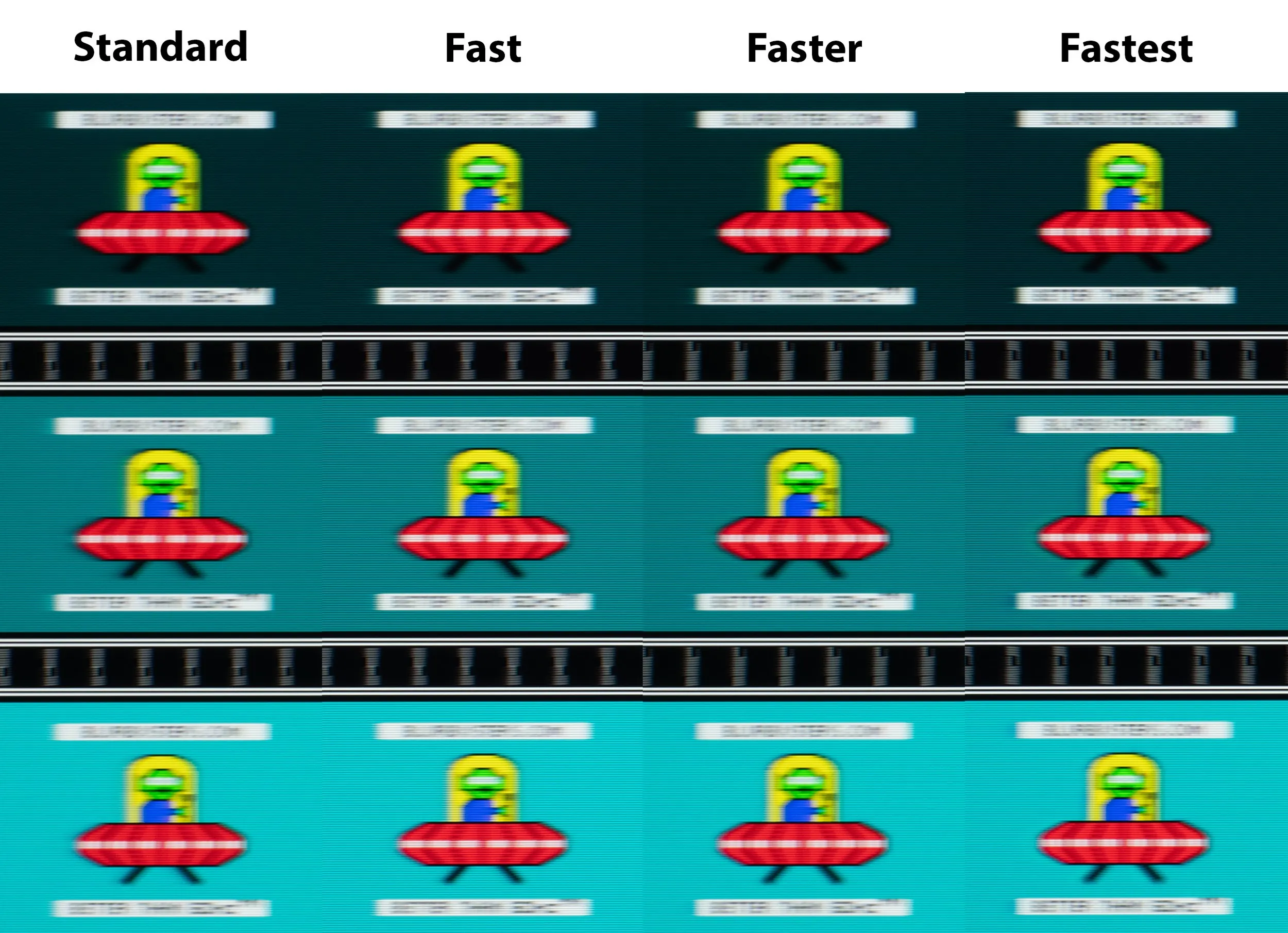 Дальнейший переход к режиму Fastest с самым сильным влиянием на панель приводит к снижению фактического времени (Initial) до 3,81 мс, но воспринимаемое время из-за появления сильных артефактов становится выше, чем было на предыдущем уровне OD – 5,42 мс. Именно поэтом мы советуем остановиться на режиме Faster и не знать подобных проблем.
