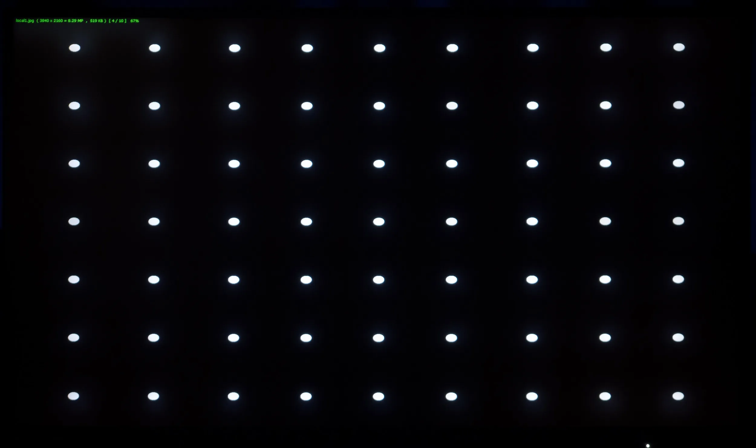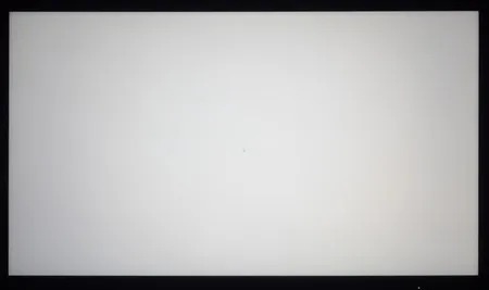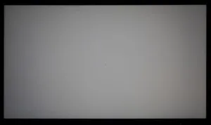 Фотография выше демонстрирует белое поле с минимальными коррекциями в графическом редакторе для более наглядного представления происходящего на экране с точки зрения равномерности светлого поля. Разница по яркости между центральной зоной, краями и углами панели хорошо видна. Главное же здесь совсем иное – цветовая температура плавно повышается справа налево.