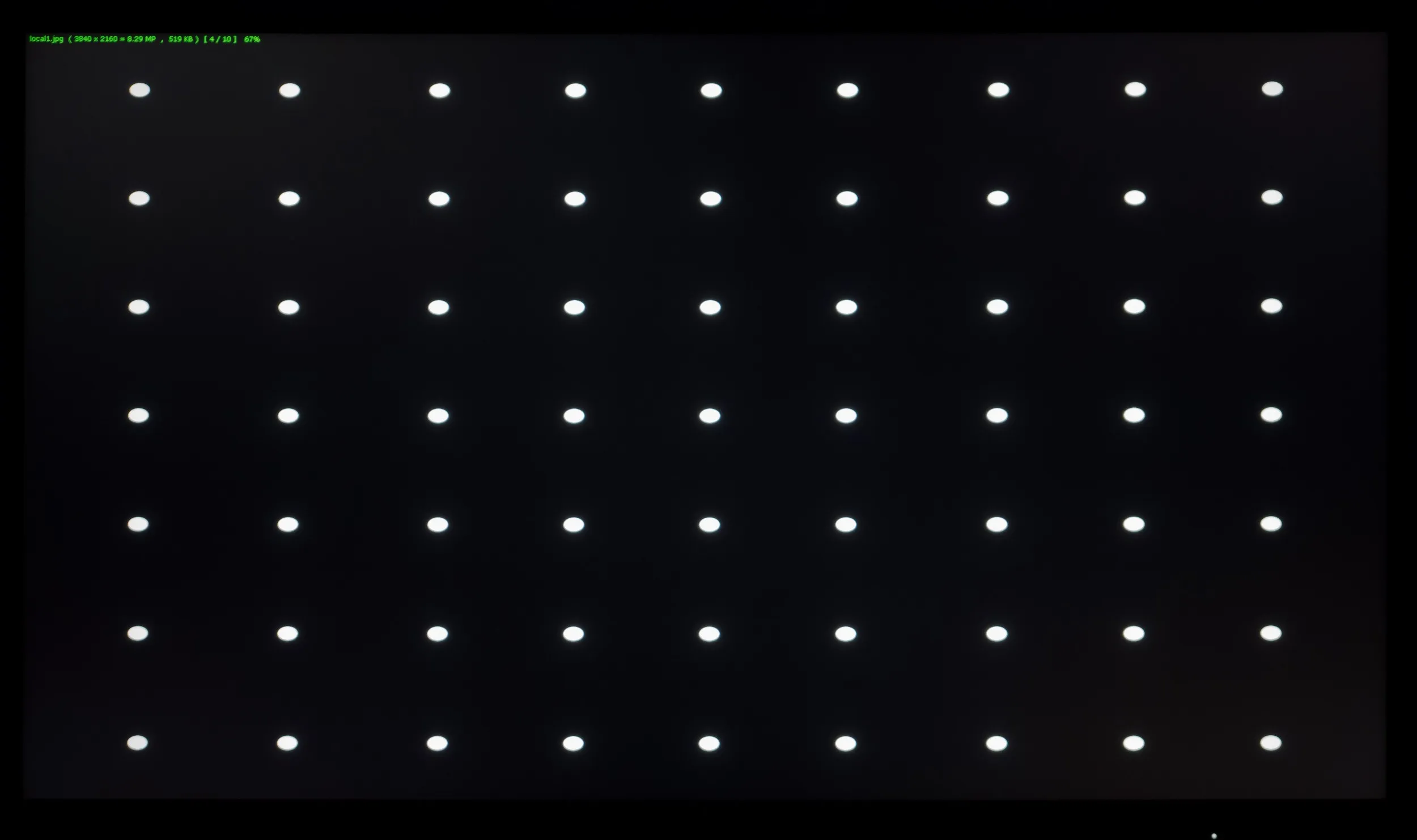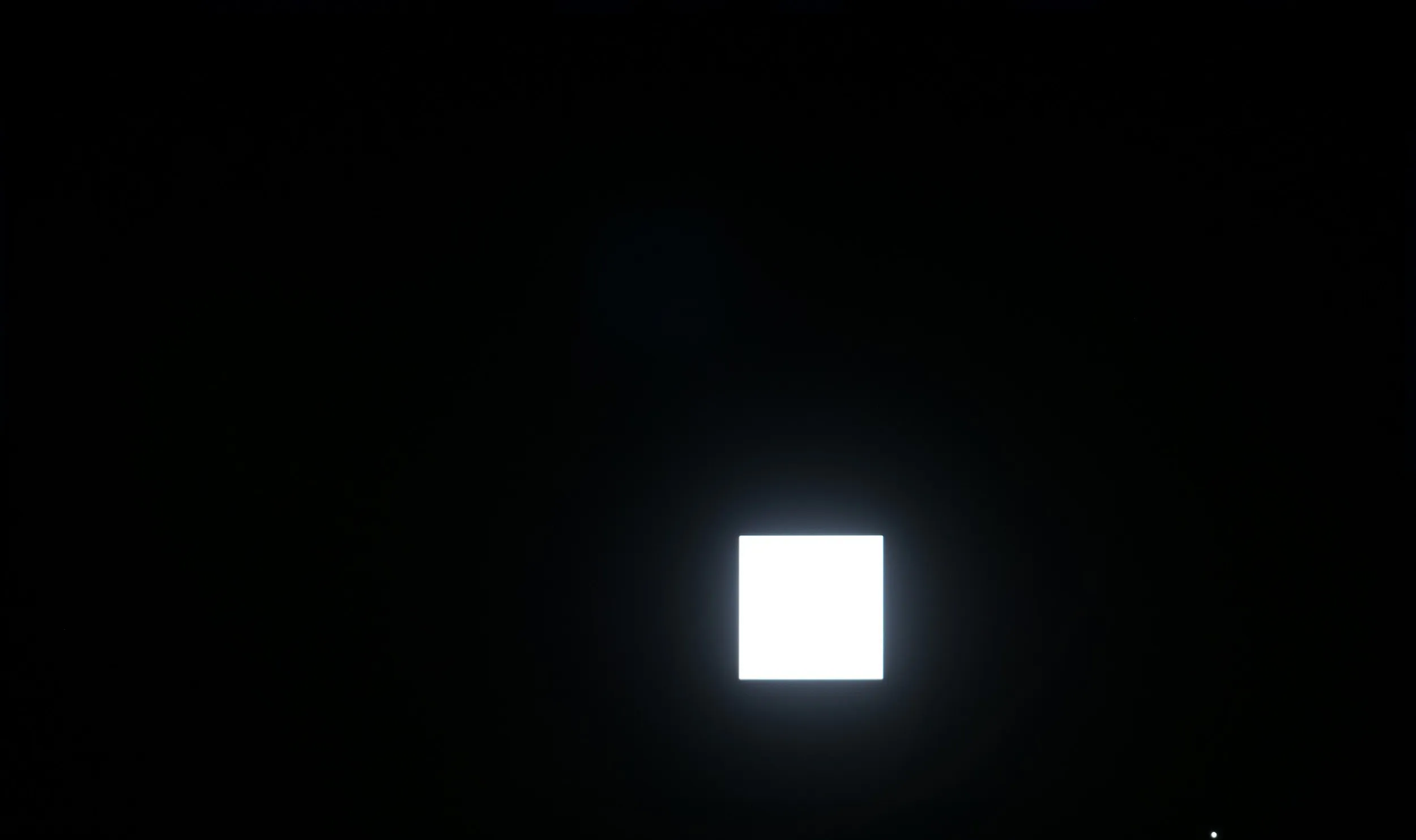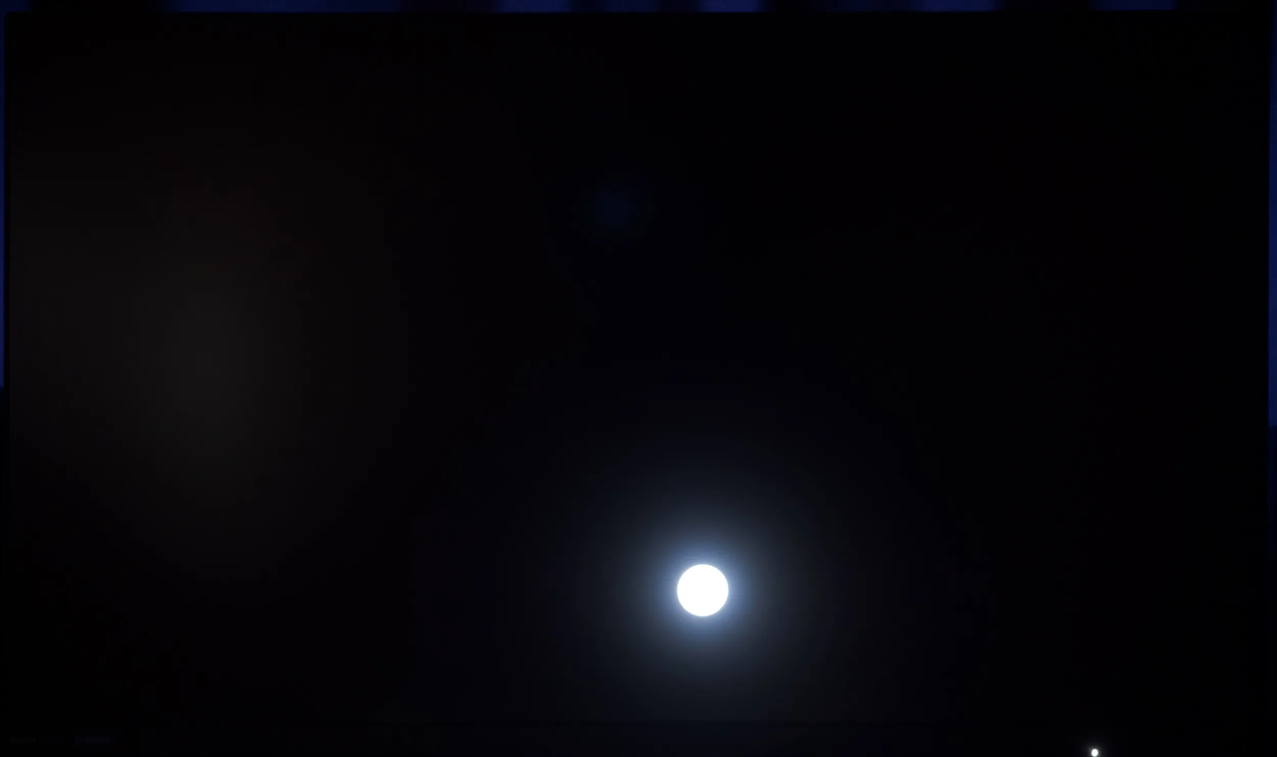 Пока же рассмотрим черный фон, оценив его «равномерность» по двум фотографиям, сделанным на разном отдалении от экрана (~70 см и 150 см), чтобы вы могли наглядно оценить влияние уже всем поднадоевшего Glow-эффекта и узнать реальную равномерность подсветки без его учёта. Напомним, что в случае данного тестирования система локального управления подсветки была выключена для демонстрации качества используемой в мониторе панели.