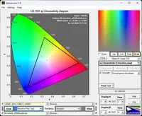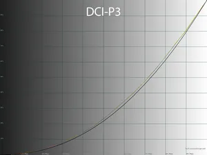 Первоначальная проверка осуществлялась при заводских настройках дисплея в режиме Native. По представленным скриншотам видно, что все три опорные точки заметно сдвинуты в пространстве относительно не только стандартного цветового стандарта sRGB, но и более широких DCI-P3 и AdobeRGB. Монитор серьёзно превосходит два первых, но по сравнению с третьим треугольник заметно сдвинут в пространстве, а поэтому говорить о полном покрытии AdobeRGB не приходится.