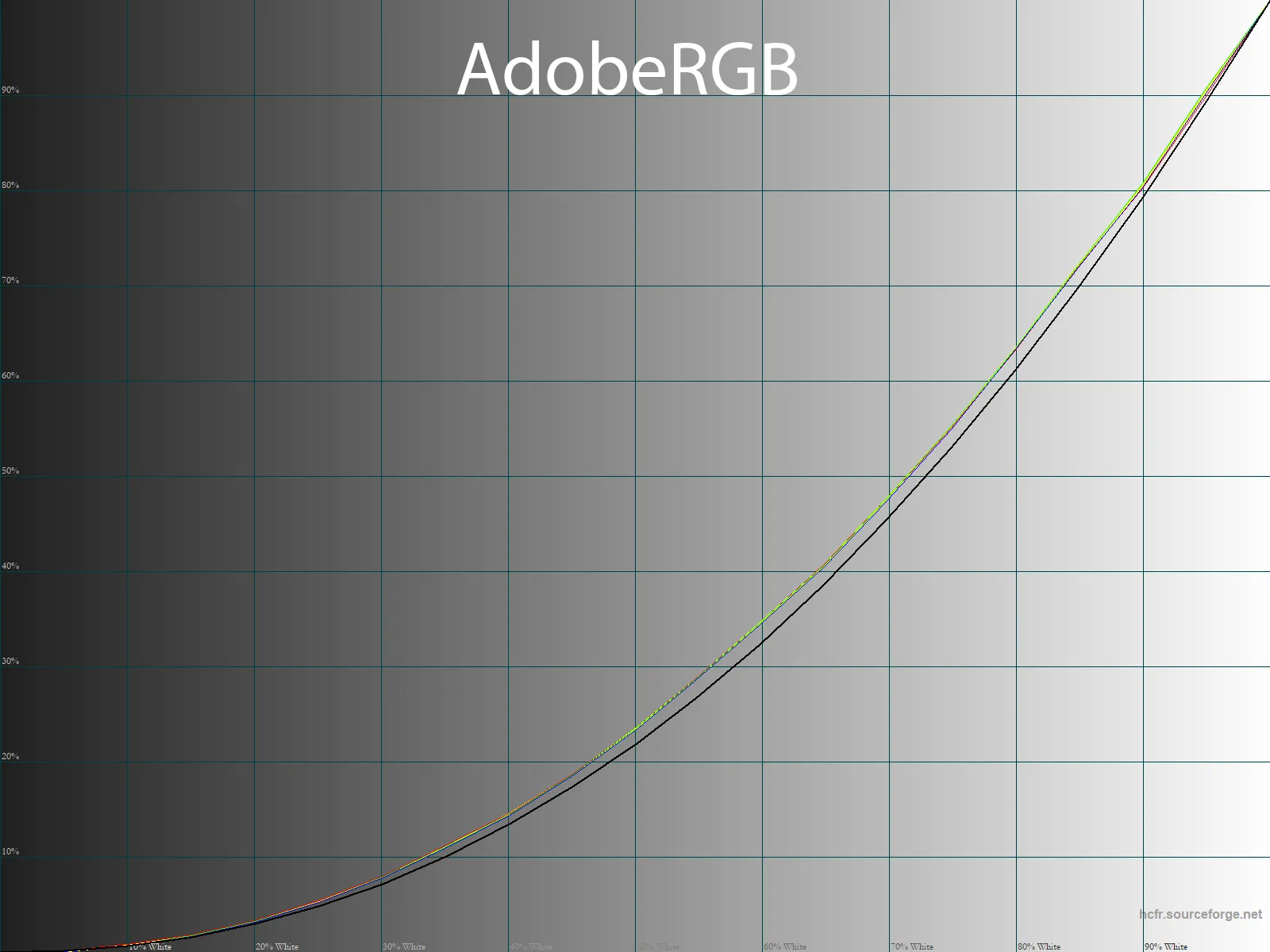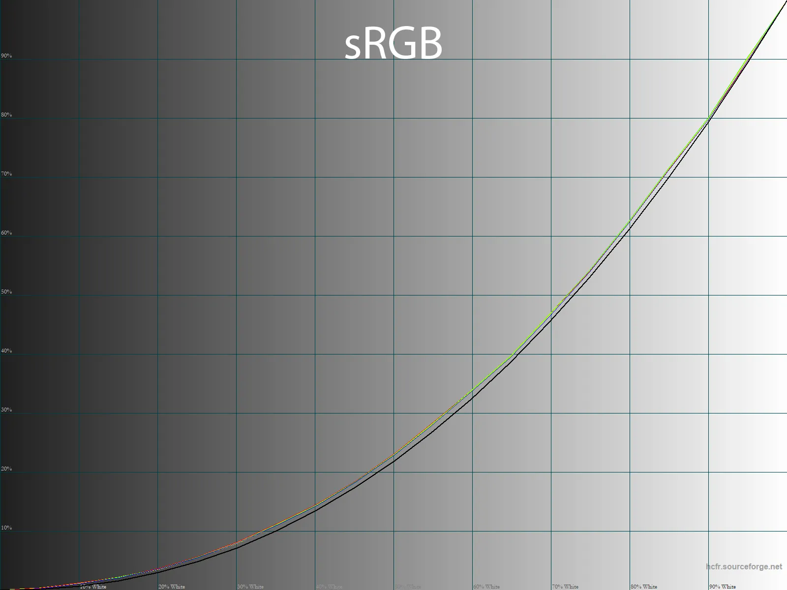 В режимах эмуляции трёх цветовых стандартов производитель дополнительно снизил реальную контрастность за счёт ещё большего подъемы кривых. Особенно это выражено в режиме sRGB, где тени становятся различимы излишне хорошо. Впрочем, всё три варианта имеют место быть и устроят подавляющее большинство потребителей.