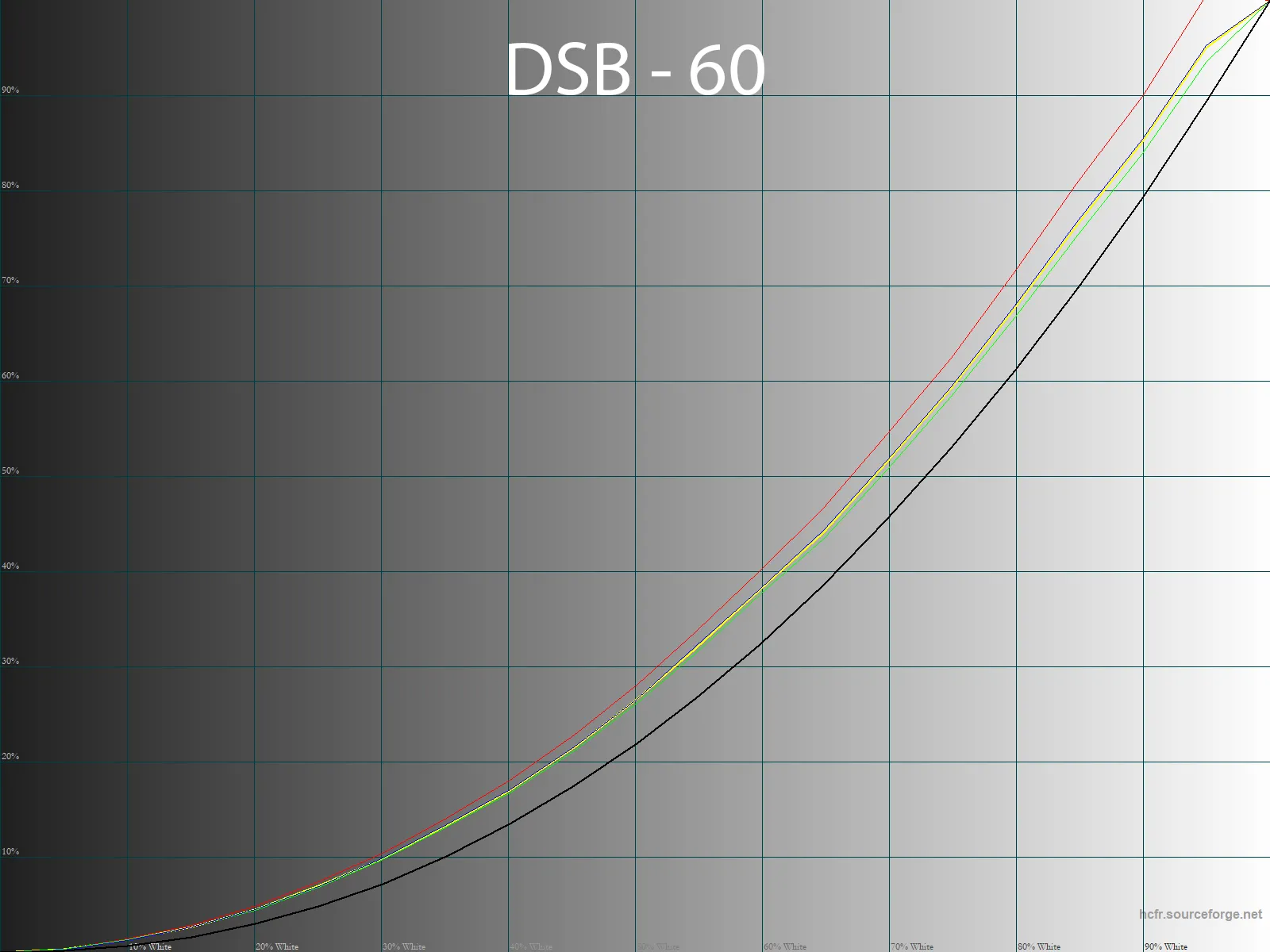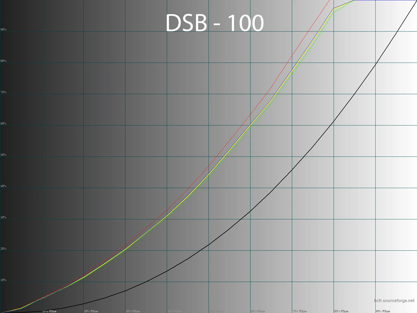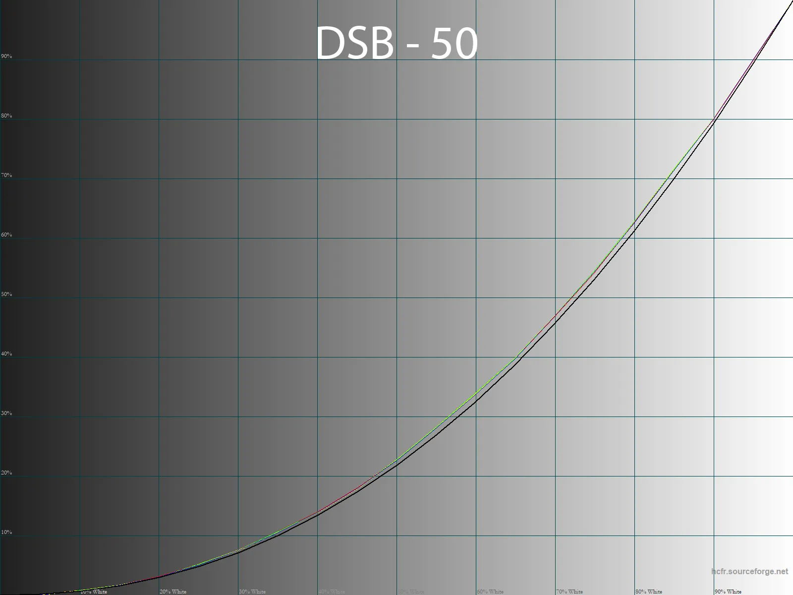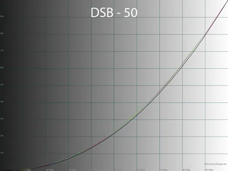 Теперь проверим работу системы Dark Scene Boost, ответственную за различимость деталей в тенях. Напомним, что по умолчанию производитель использует значение 50 (его же следует принимать за ноль), а все измерения мы проводили после установки режима Gamma 2.2 – она же выставлена по умолчанию.