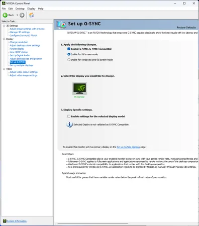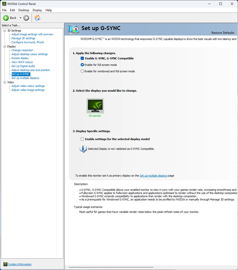 Среди систем адаптивной синхронизации дисплей Xiaomi Redmi Display G Pro поддерживает открытый стандарт VESA Adaptive-Sync (получен соответствующий сертификат соответствия), AMD FreeSync Premium и NVIDIA G-Sync в режиме Compatible. С последней технологией монитор от Xiaomi работает неофициально, соответствующий сертификат от NVIDIA не получен.
