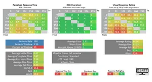 Новое оборудование позволило нам измерить и время задержки вывода монитора – input-lag. В случае с героем обзора, при подключении по DisplayPort 1.4 с DSC и установленной частотой в 180 Гц и активированным NVIDIA G-Sync Compatible, в среднем оно не превысило 3,5 мс – отличный результат для современного игрового монитора.
