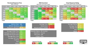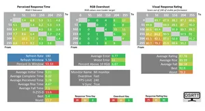 Если же активировать режим Fast, то среднее воспринимаемое время снижается до 5,07 мс при достаточно строгом допуске RGB 5 (такой допуск, в некоторых случаях, ощутимо повышает полученные значения, но позволяет гораздо лучше определить реальную скорость дисплея), но с более сильным и слегка заметным на глаз проявлением артефактов (с ошибкой до 20 значений RGB), что можно заметить по сравнительным фотографиям выше.