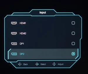 Нажатие джойстика проводит к появлению на экране простого OSD-меню с пятью пиктограммами. Через них можно попасть в основное меню, выбрать источник сигнала, выключить монитор и быстро изменить уровень яркости.