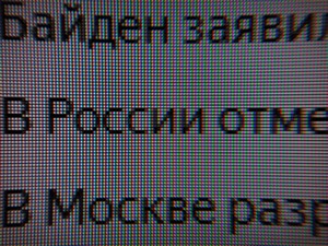 Мы видим структуру пикселей свойственную классическим AH-IPS-панелям, но в немного вытянутом виде. Кристаллический эффект при обычных рабочих условиях себя практически не проявляет (зависит от степени восприимчивости и от того с чем сравнивать) и не усиливается при взгляде сверху или снизу. Картинка на экране приятна глазу и не напрягает структурой «туалетной бумаги». От эффекта Cross-hatching монитор также избавлен.