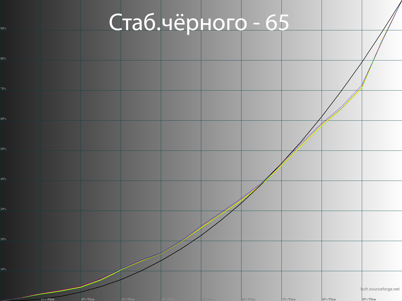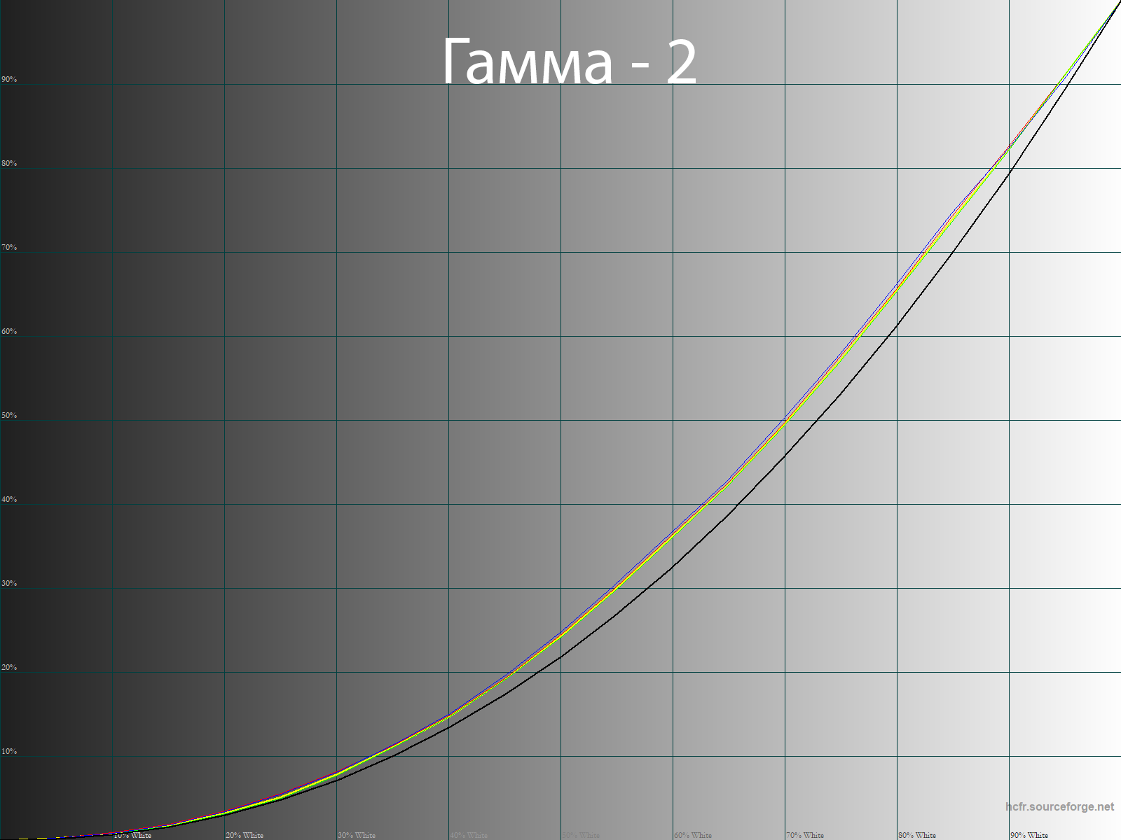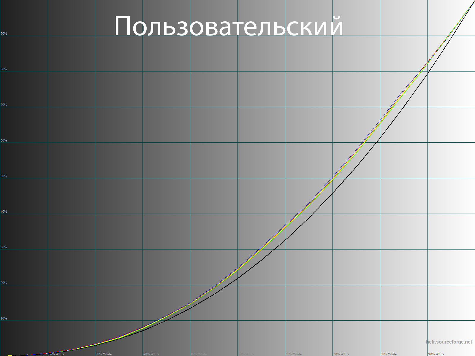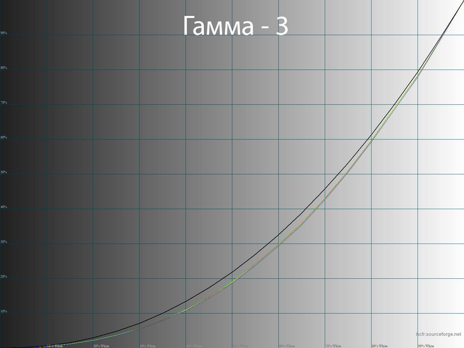 С помощью программы HCFR Colormeter и “откалиброванного” колориметра X-Rite Display Pro мною были изучены гамма-кривые во всех рассмотренных выше “режимах”, как изначально предустановленных, так и специально “разработанных”. Кроме того, по произведённым измерениям можно оценить расхождение серого клина (точек чёрно-белого градиента) на CIE диаграмме и сделать выводы о преобладании того или иного паразитного оттенка, либо его таковом отсутствии.