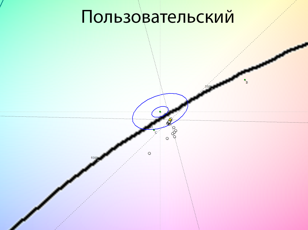 В итоге совет таков – если у вас нет измерительных приборов для настройки, то можно остановиться на заводских настройках либо выставить (от нечего делать) режим «Тёплый». В ходе дальнейшей настройки и, в частности, снижения яркости подсветки, могут понадобиться дополнительные коррекции ЦТ, но даже без них монитор будет относительно близок к референсу в 6500К.