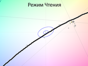 Чтобы избавиться от таких проблем производитель, к счастью обычных потребителей, добавил полноценный режим эмуляции sRGB с возможность регулировки яркости (!). Ощутимое сужение цветового охвата происходит только в нём. В том же режиме для Чтения, призванным снизить нагрузку на глаза, цвета остаются перенасыщенными.