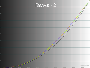 При стандартных настройках измеренные гамма-кривые проходят несколько выше референсной кривой со значением 2.2, особенно в центральной области. Наблюдается некоторый дисбаланс RGB. Картинка на экране более «мягкая», чем должна быть. Есть очевидные проблемы с точкой белого и балансом серого – он средний по уровню.