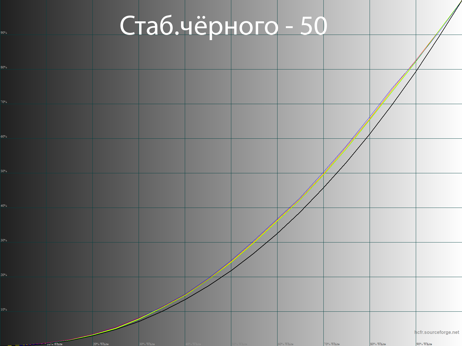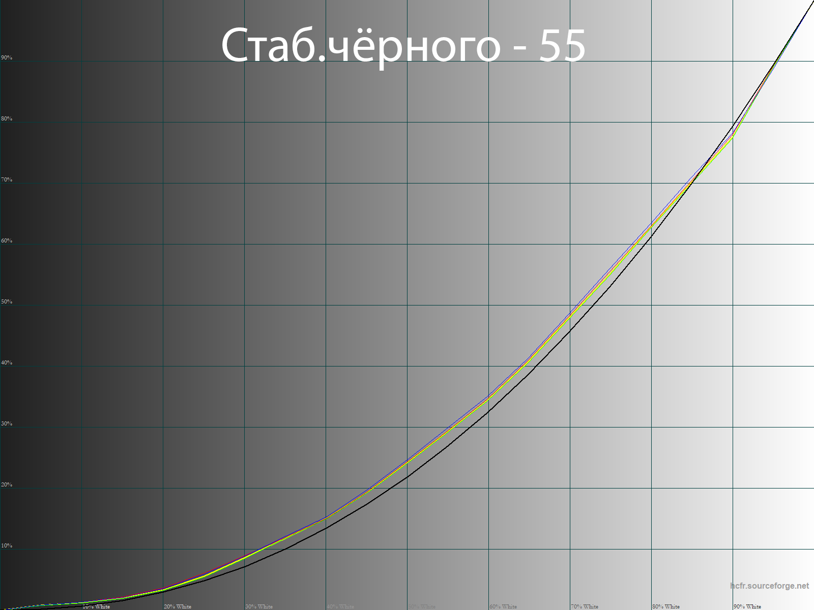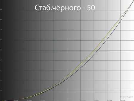 В ходе экспериментов стало ясно, что система работает, мягко говоря, резко. Если понижать уровень, то затрагивается участок от 0 до 30 %, если же повышать, то случается резкий провал в светах и гамма-кривые все сильнее приобретают S-образный вид. Таким образом, наиболее удачным вариантом выступает регулировка в диапазоне 45-55 %. Отклоняться же этих значений, если вы хотите получить адекватную цветопередачу, точно не стоит.