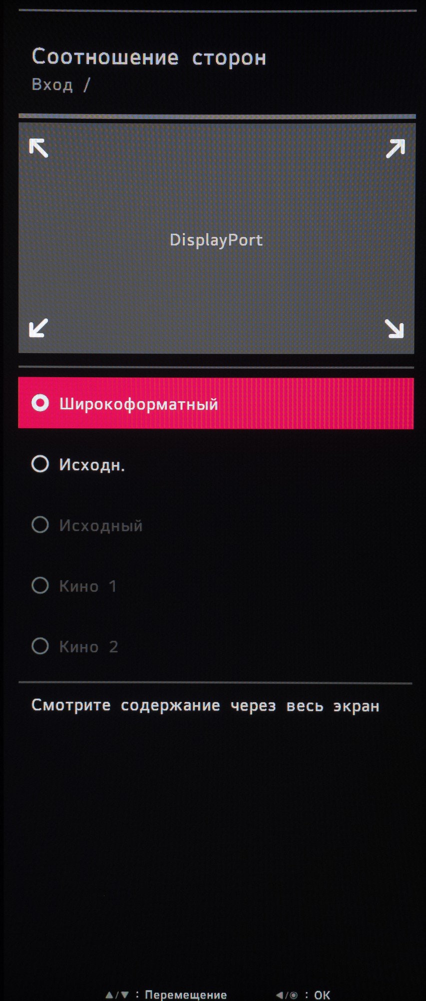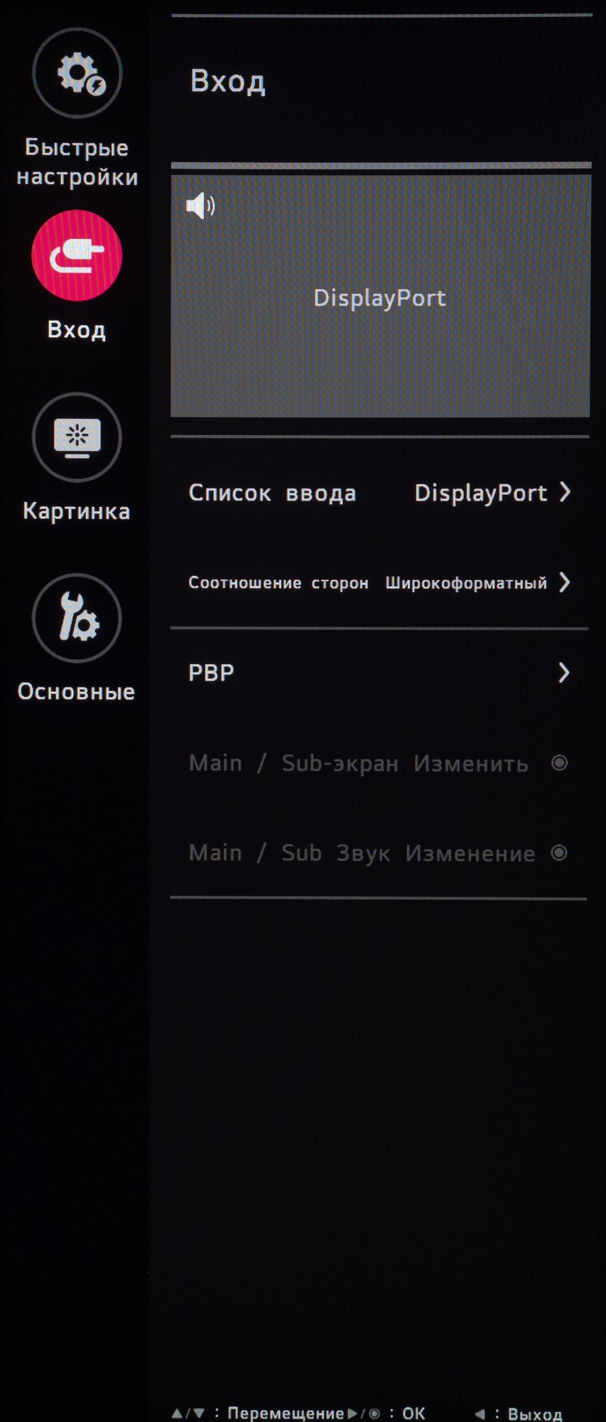 Второй отдан под выбор источника сигнала и изменение режима работы встроенного скалера изображения. Здесь же можно активировать функцию Picture by Picture, без дополнительных настроек.
