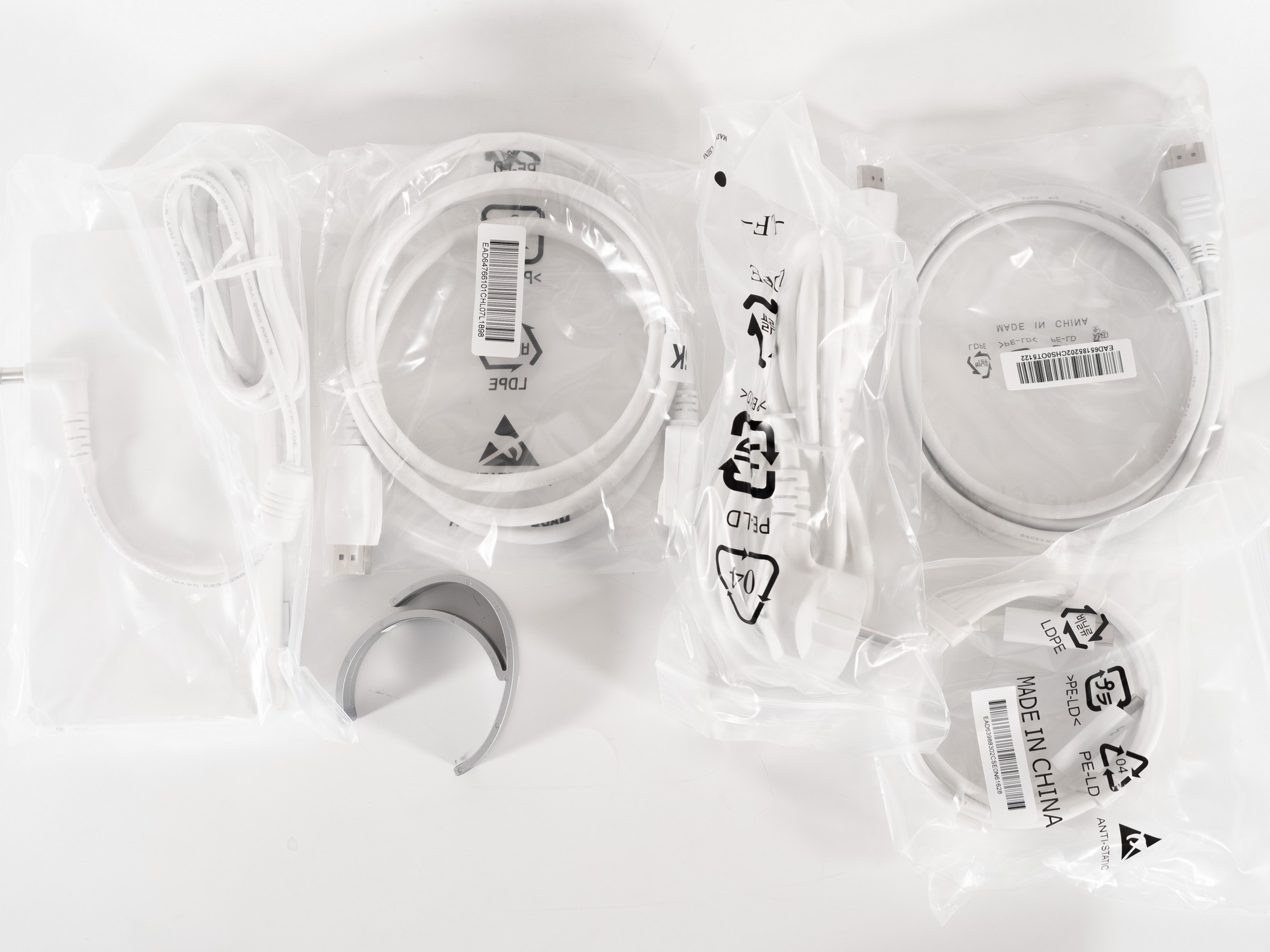 Для класса и стоимости монитора комплект поставки можно назвать безупречным. Все кабели выполнены в белом цвете, как и основная часть корпуса.