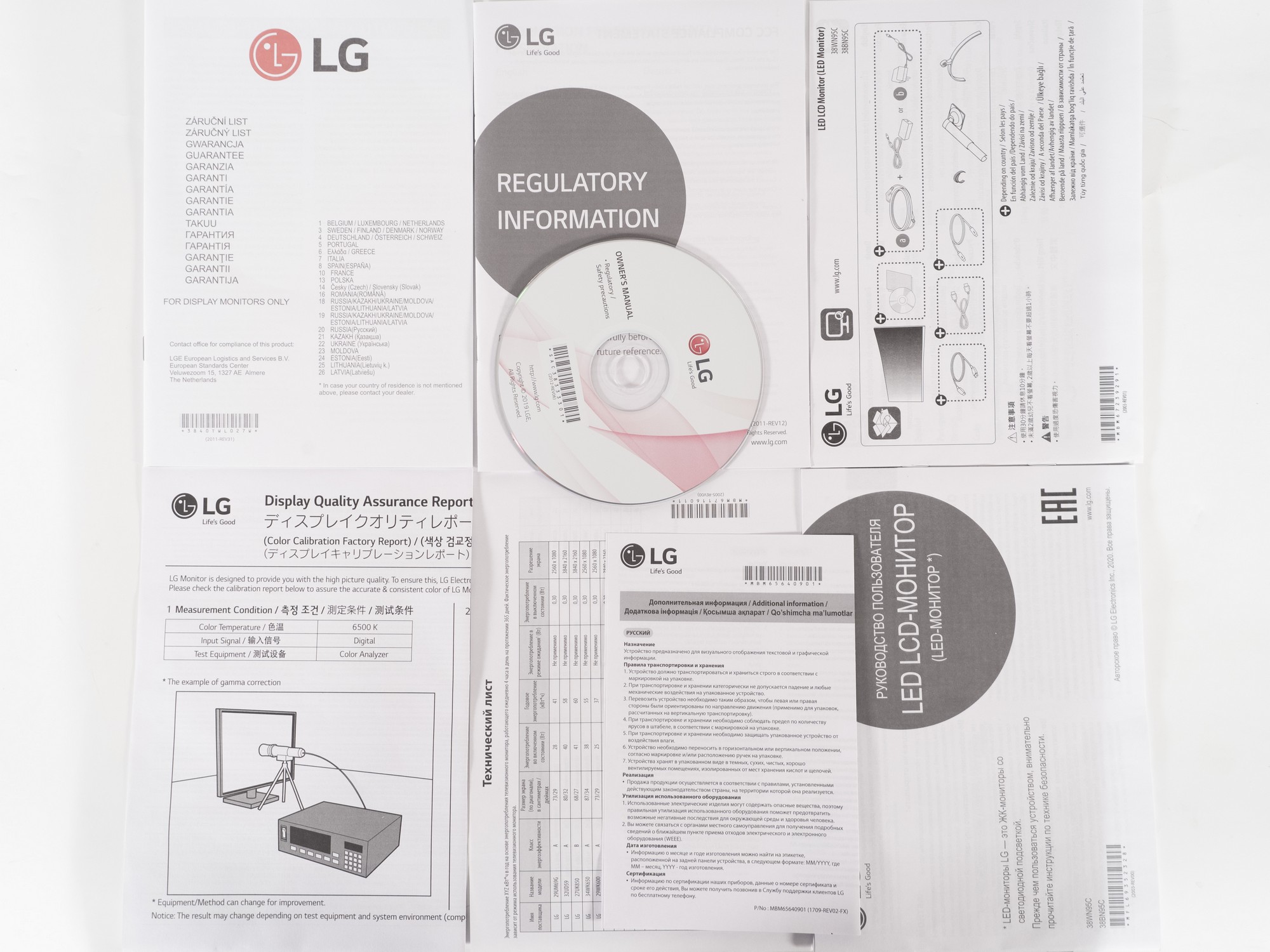 Комплект уложен в отдельный картонный бокс. Присутствует отчёт о заводской калибровке монитора с минимальным набором собранных данных. По большому счёту данный листок бумаги ни о чём не говорит, ведь производитель сразу заявляет, что результаты могут «плавать» и зависеть от используемого оборудования.