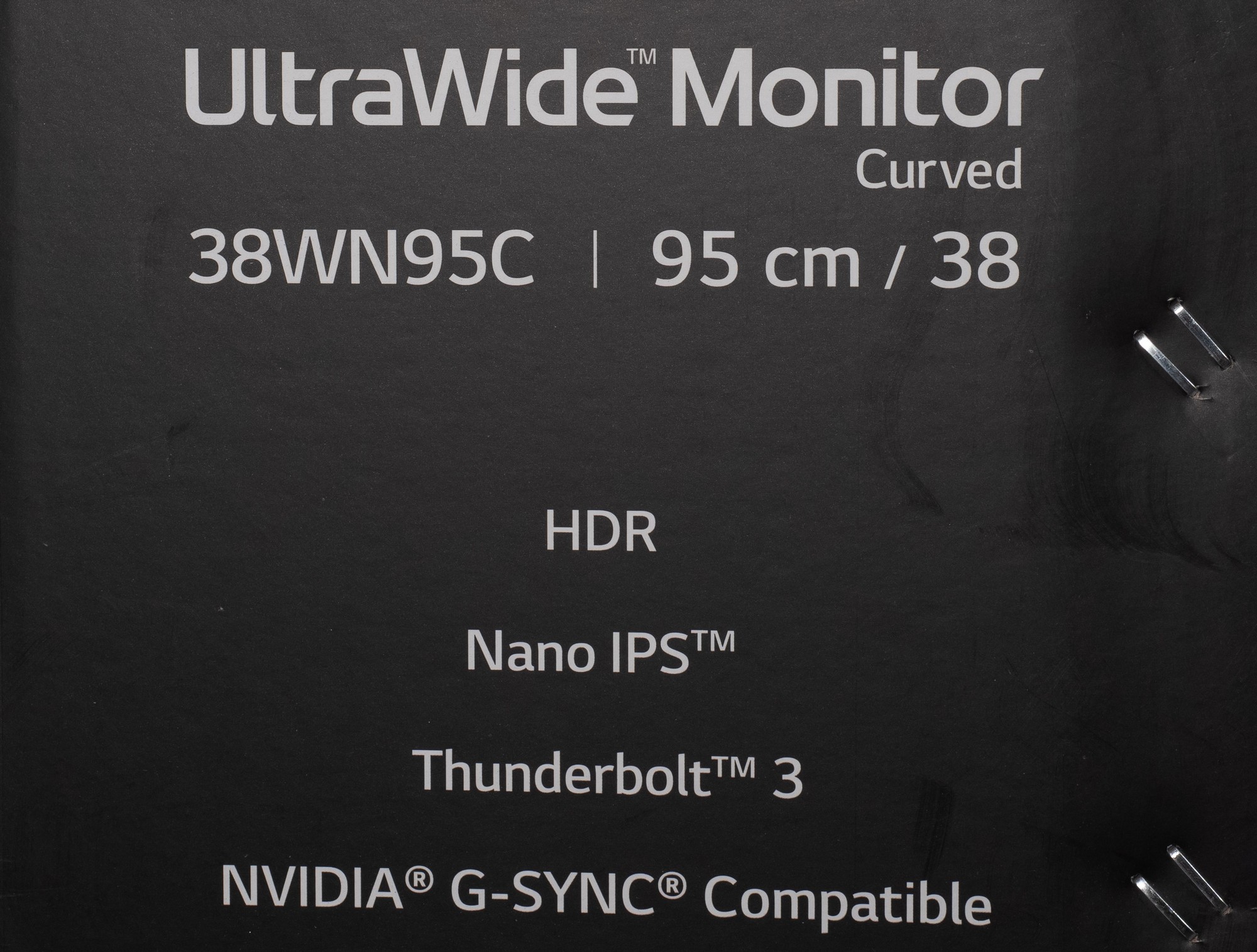 По данным на коробке покупатель сразу должен понять, что перед ним модель на базе Nano-IPS матрицы, с поддержкой NVIDIA G-Sync Compatible, HDR и интерфейсом Thunderbolt 3, что наиболее актуально для пользователей техники Apple.