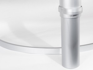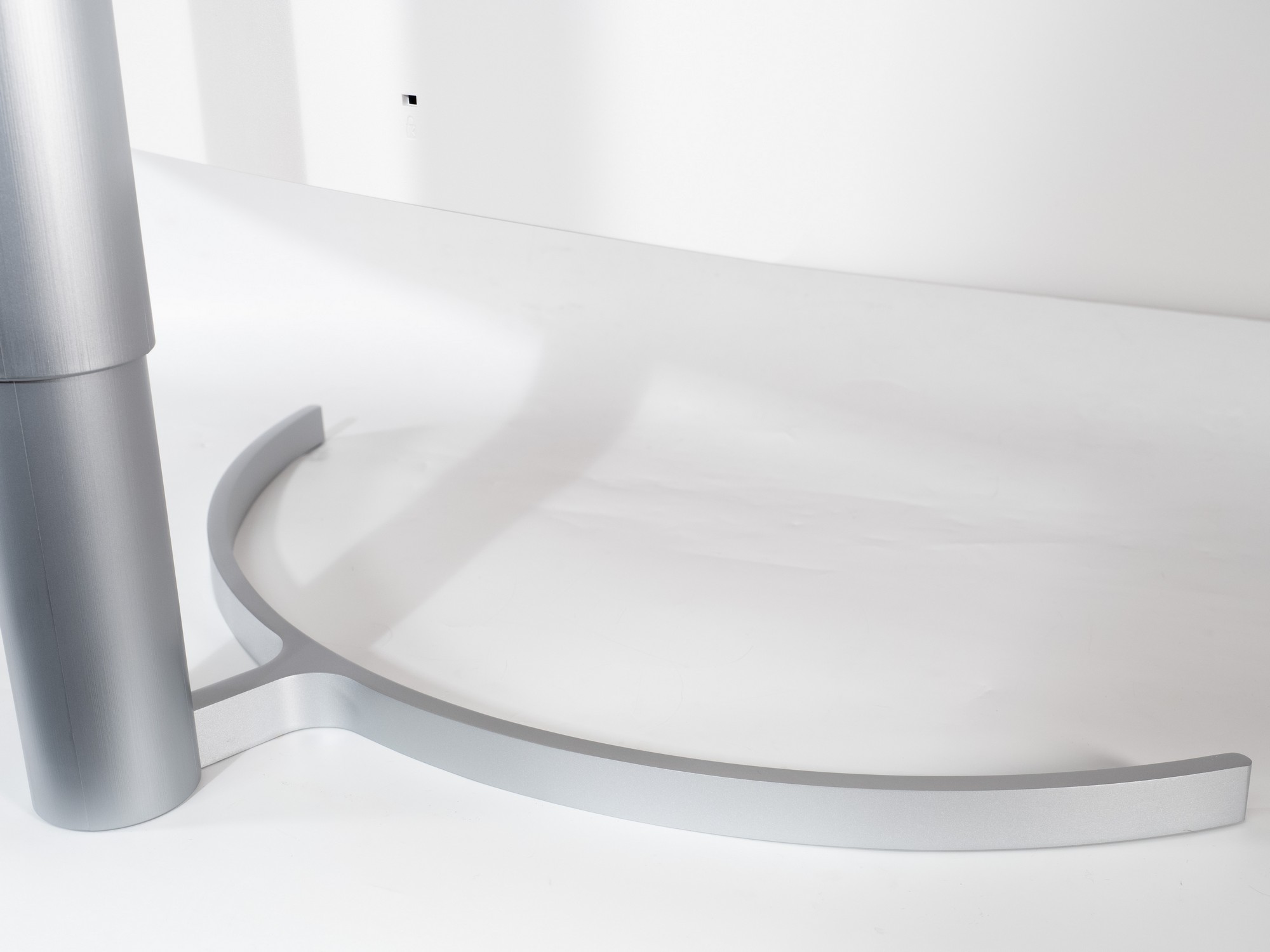 Крупная алюминиевая подставка – единственный металлический элемент, не прикрытый пластиком. Вопросов к её устойчивости не возникает, да и места она занимает не так много благодаря тонкости конструкции.