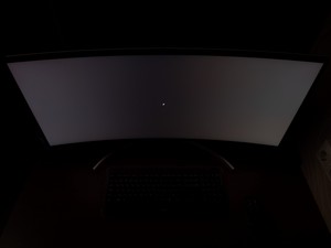 На чёрном поле Glow проявляет себя характерно для современных IPS-панелей схожей диагонали. При изменении угла просмотра чёрное поле приобретает различные паразитные оттенки в той или иной частях экрана. Снизить его видимость можно только снижения яркости подсветки и увеличением внешней освещённости рабочей зоны. Другими словами – подобные проверки, как на фото выше, не должны иметь ничего общего с реальным использованием монитора. По крайней мере, к этому стоит стремиться и никогда не работать в помещении без хотя бы одного источника освещения.