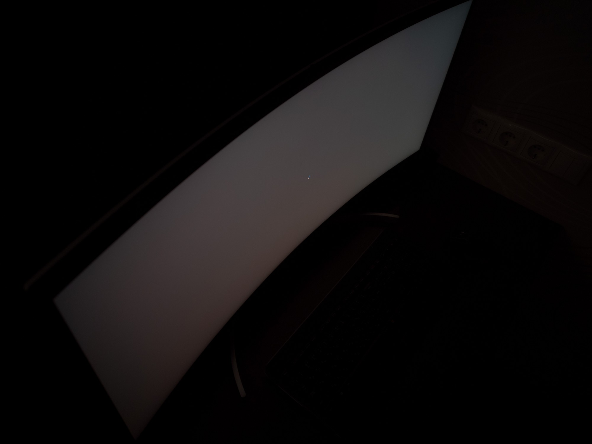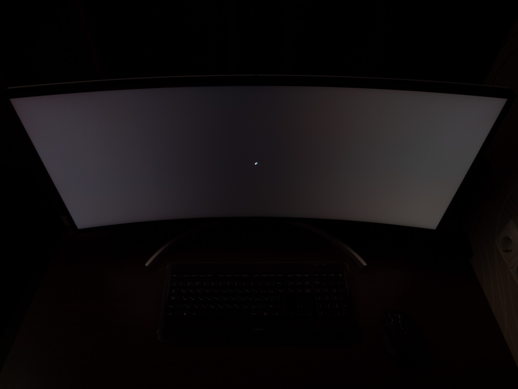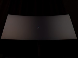 Теперь рассмотрим черный фон, оценив его «равномерность» по двум фотографиям, сделанным на разном отдалении от экрана (~70 см и 150 см), чтобы вы могли наглядно оценить влияние уже всем надоевшего Glow-эффекта и узнать реальную равномерность подсветки без его учёта.