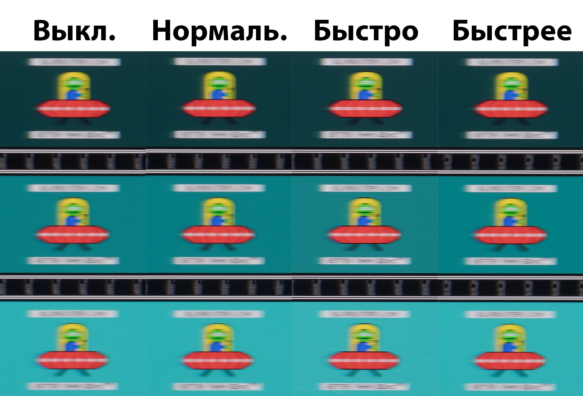 Для увеличения скорости поворота жидких кристаллов в модели применена технология разгона OverDrive, которую можно отключить либо активировать в одном из четырёх доступных положений (по умолчанию используются «Быстро»). Посмотрим на полученные результаты:
