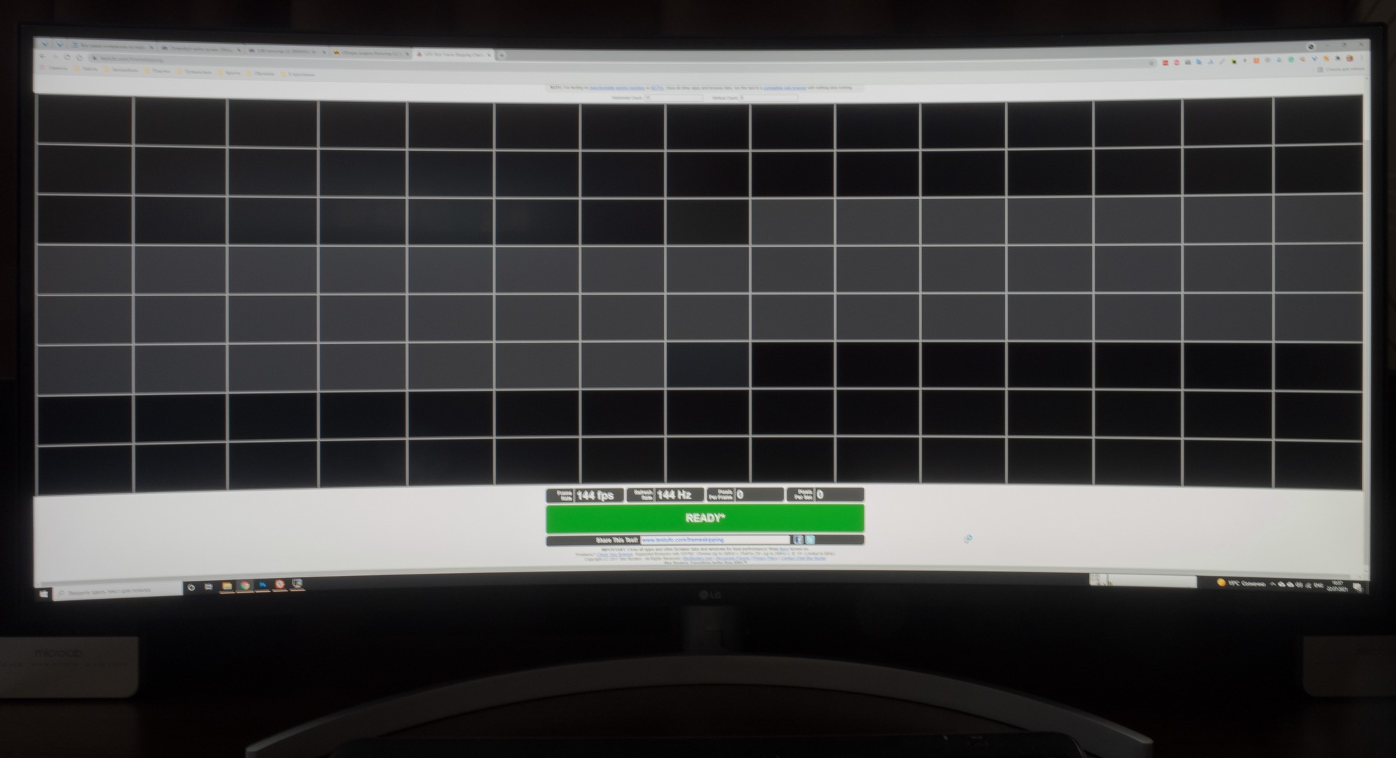 Пропуск кадров при работе на частоте 144Гц отсутствует – подтверждено специальным тестом из пакета TestUFO. Проблем в ходе продолжительной работы не возникло – частота стабильна.