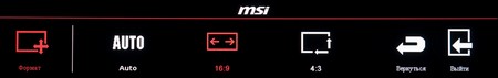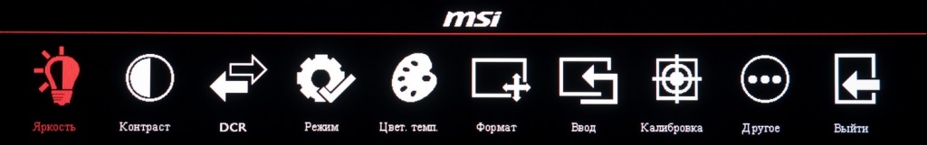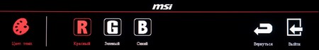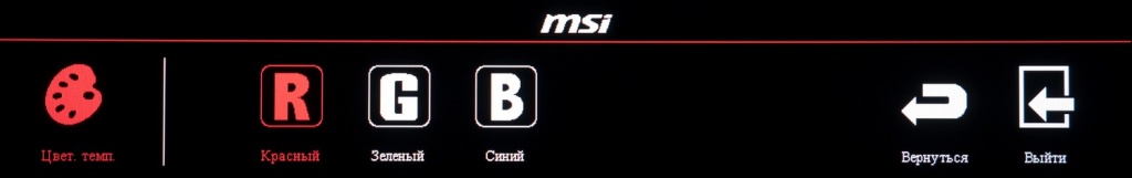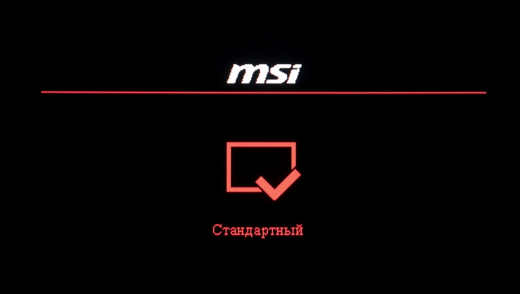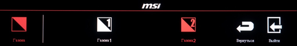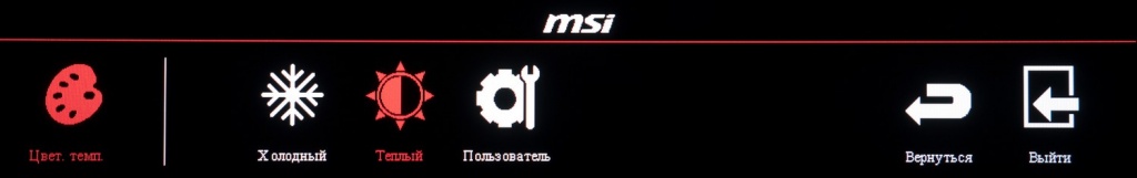 У новинки MSI нет каких-либо встроенных датчиков (освещенности, приближения), но в меню есть пункт «Калибровка», где было найдено два режимы гаммы.