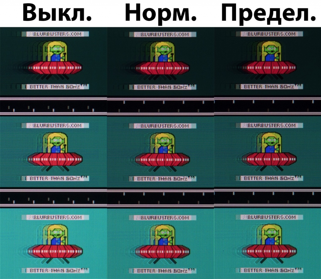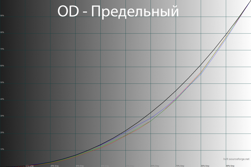 При активации OD «Предельный» картина происходящего меняется в пределах погрешности измерений. Ручные настройки в режиме Стандарт также не делают изображение на экране других. Разницу сложно уловить на глаз, необходимы приборы.