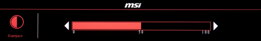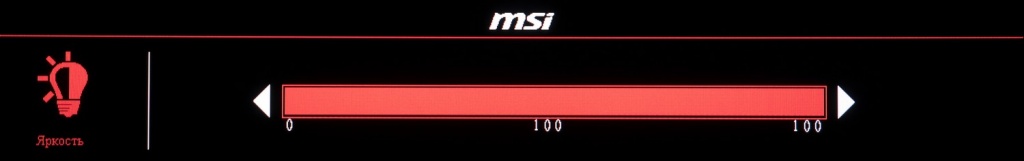 Рабочий диапазон оказался не самым идеальным. Если в максимуме монитор слегка превзошёл значение из ТХ, то по минимальной границе монитор MSI смело получает оценку «удовлетворительно», поскольку многие продвинутые пользователи хотели бы видеть что-то наподобие 40-50 нит, что куда более комфортно для работы в слабо освещённом помещении вечером и ночью. Для желающих получить что-то подобное мы советуем обратиться к параметру «Контраст», который, конечно, негативно повлияет на коэффициент контрастности, но зато вы получите то, что так искали.