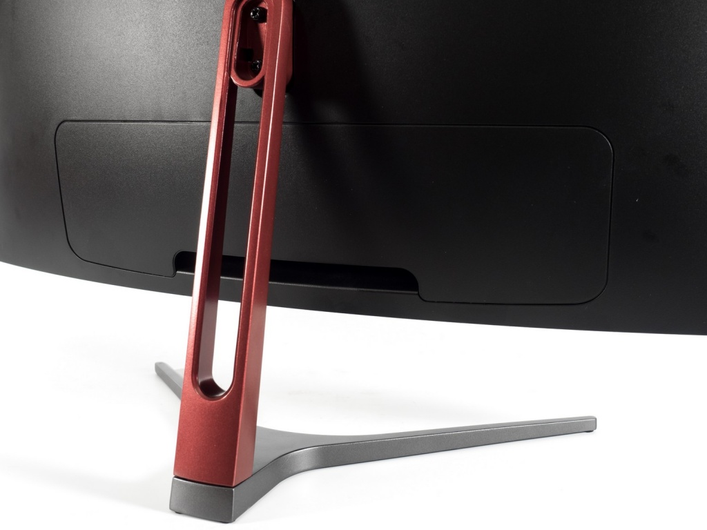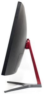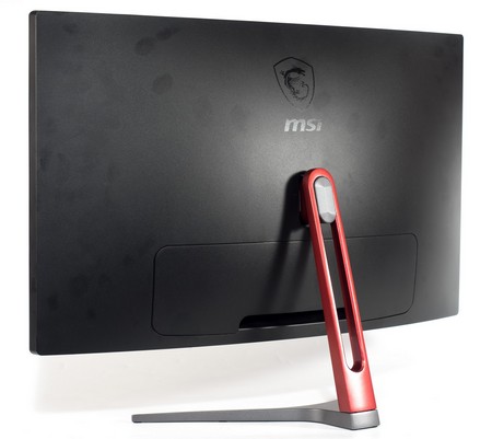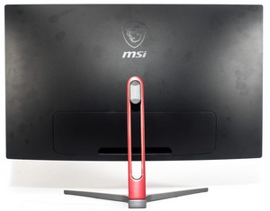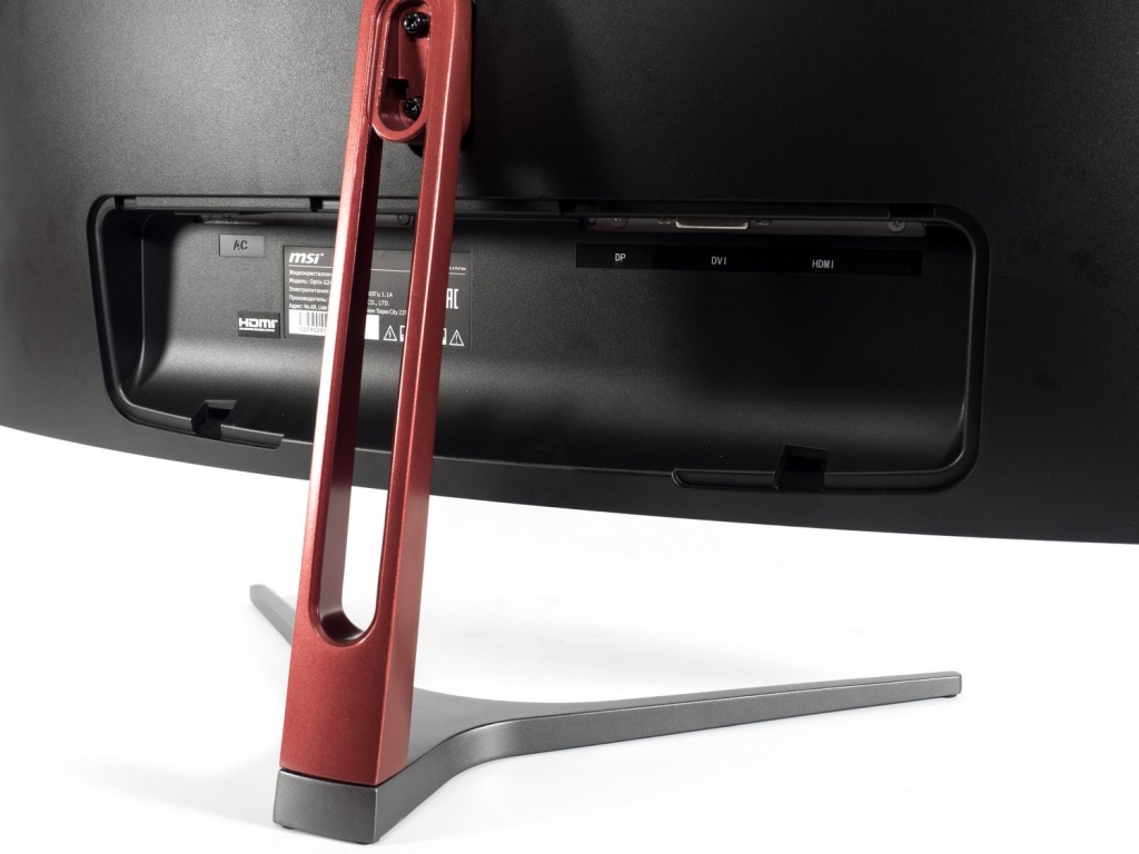 С целью снижению цены конечного устройства инженеры MSI отказались от сложного дизайна корпуса, не предусматривающего поддержку VESA-совместимого крепления, обошлись без «безрамочности» и различных систем подсветки внешнего пространства, установили простую подставку с одной степенью свободы.