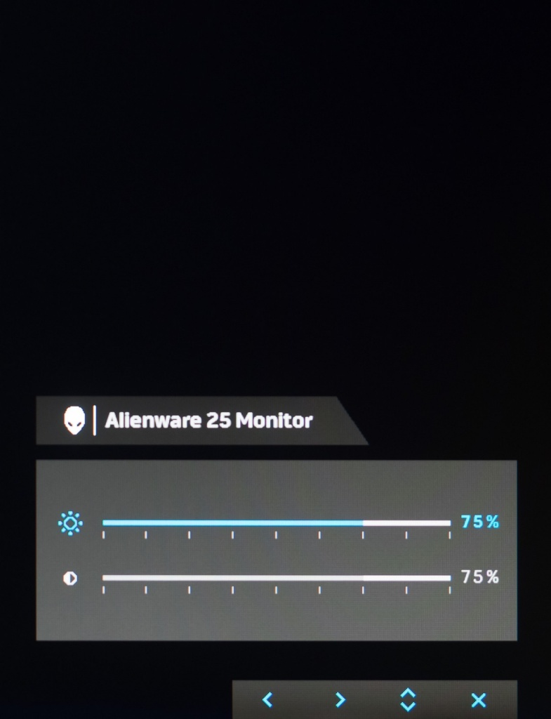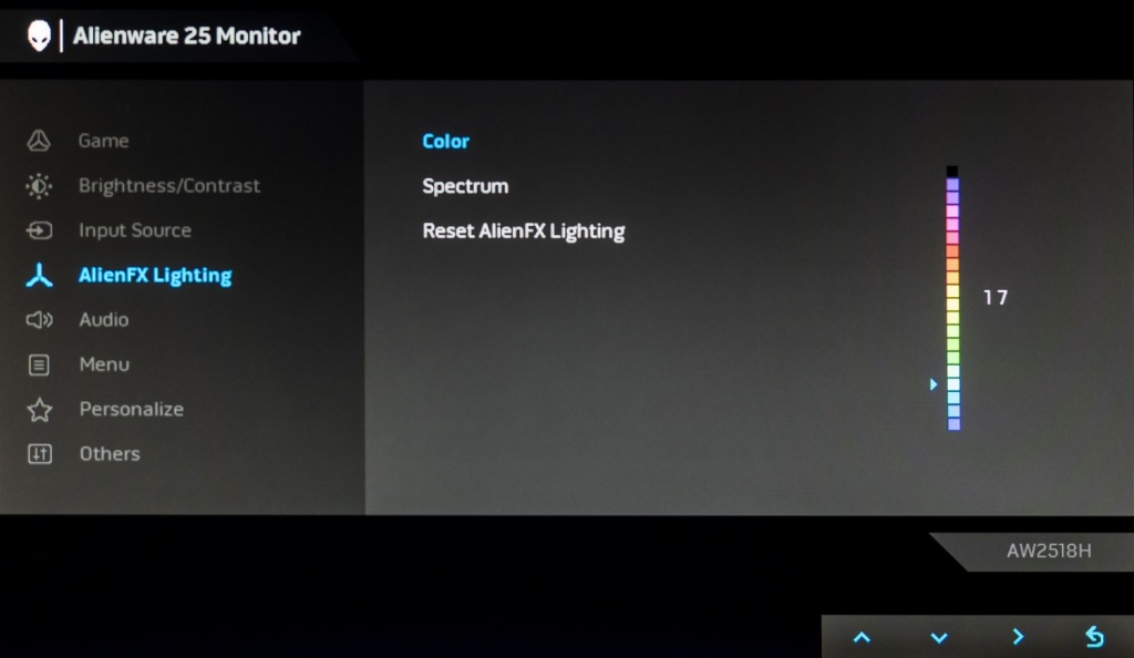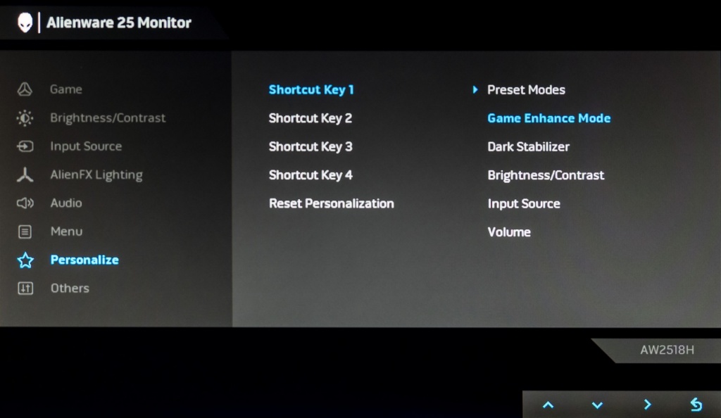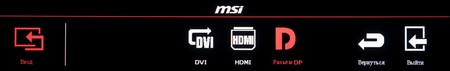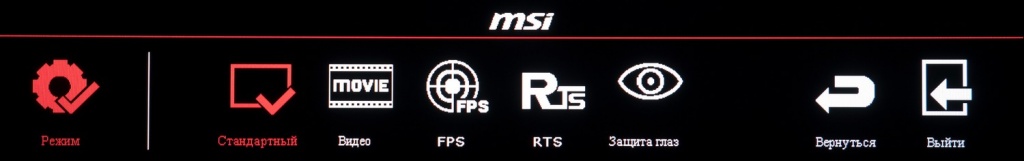 Для перехода в основное меню необходимо нажать крайнюю левую клавишу. Две следующие служат для навигации (вправо/влево, +/-), быстрого включения экранного прицела (всего четыре варианта – два прицела двух разных цветов) и выбора предустановленного режима изображения. Четвёртая управляющая клавиша служит кнопкой «назад/выход».