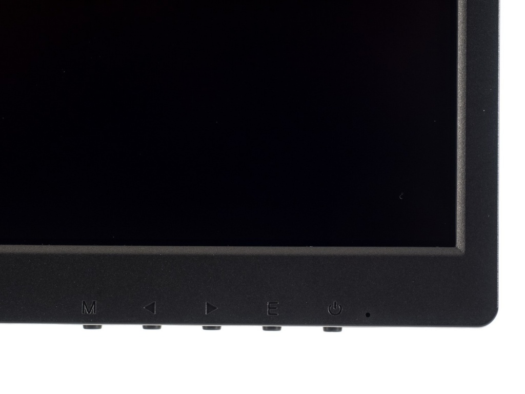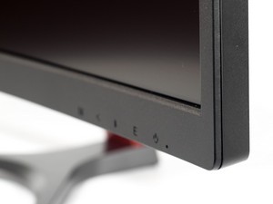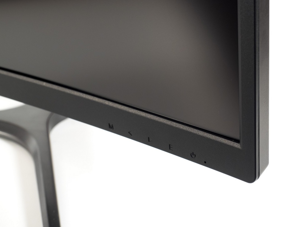 Управление монитором производится посредством пяти физических клавиш особой формы, расположенных на нижней грани в правой части корпуса. Самая крайняя к углу из них – клавиша питания. Рядом с ней разместился синий светодиод питания, находящийся на передней рамке корпуса.