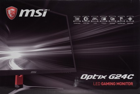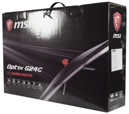 Монитор MSI упакован в небольшую коробку с качественной полиграфией, выполненной в присущей для продукции MSI цветовой гамме. На упаковке представлено несколько «фэшн» фотографий устройства, а семь пиктограмм в обрамлении рассказывают нам об основных особенностях G24C.
